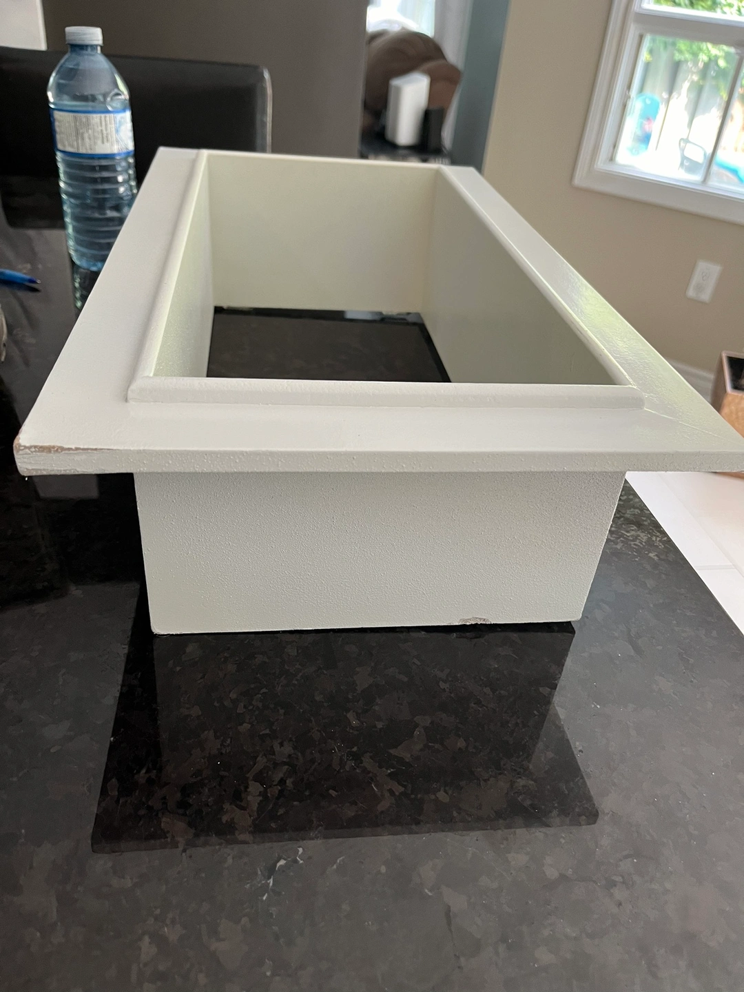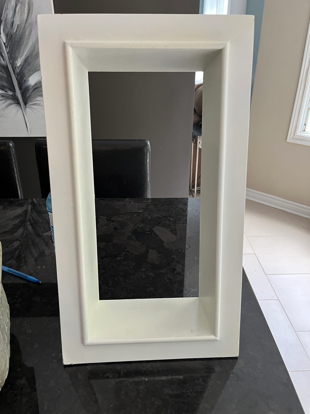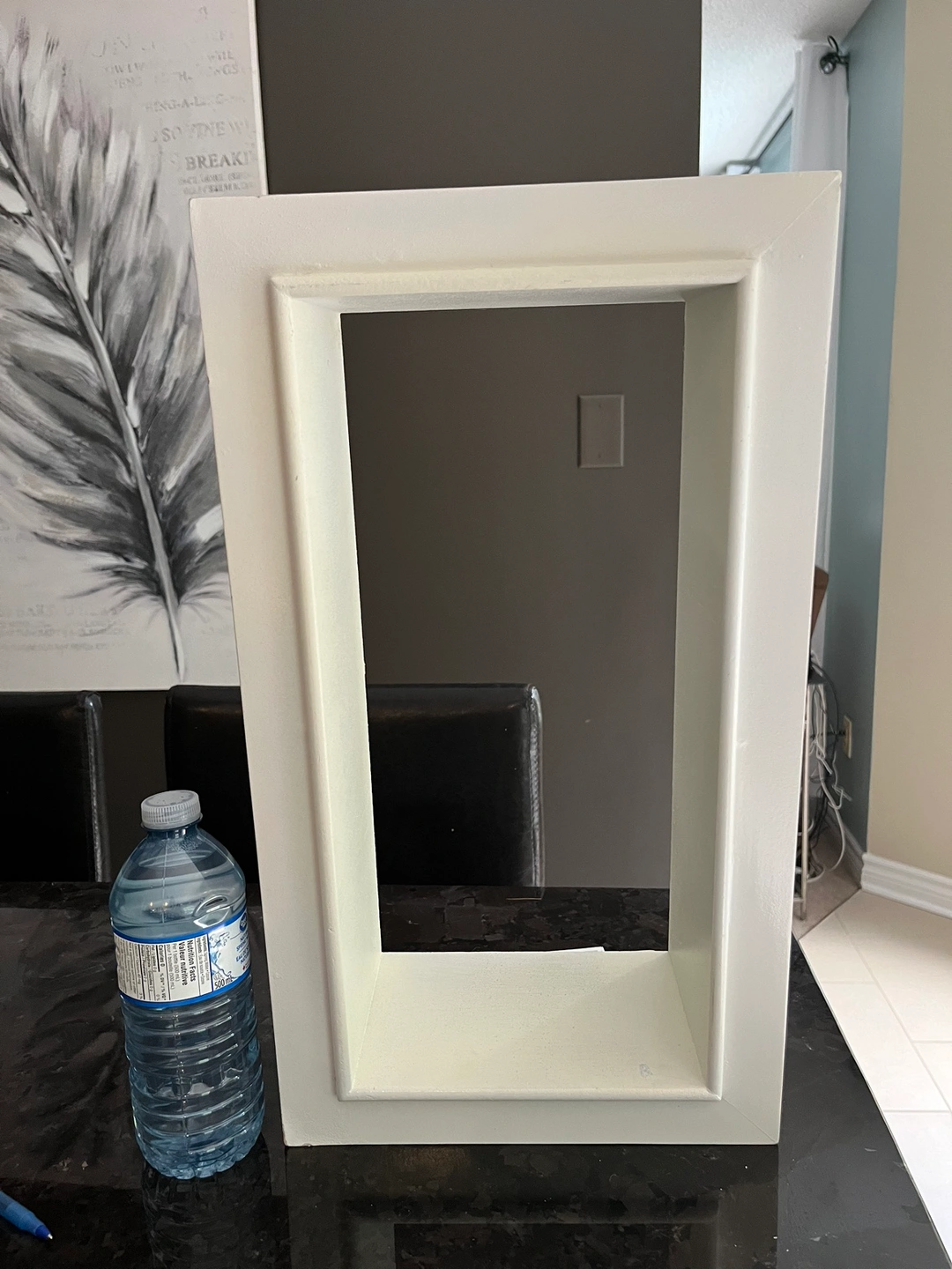 White floating shelf, approximately 18 inches tall, 10 inches wide and 4.5 inches deep. Can be hung in either direction. Only 2 nails needed. Flaw on one corner but can easily be touched up with white paint . Price reflects this Serious buyers only please. Porch pick up at McCowan and 16th in Markham.