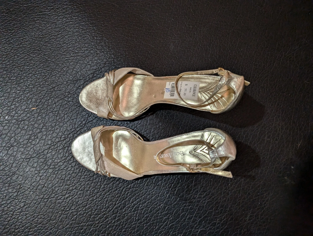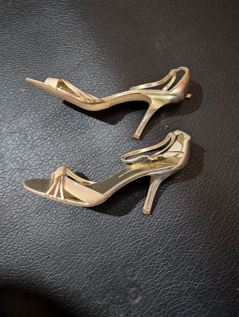 Enzo Angiolini Gold Shoes with ankle strap and pointed toe Leather sole. In great condition size 10