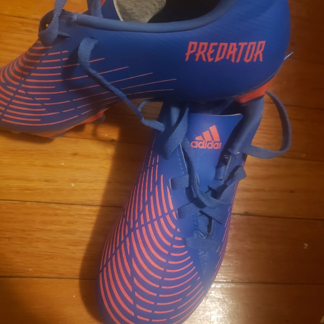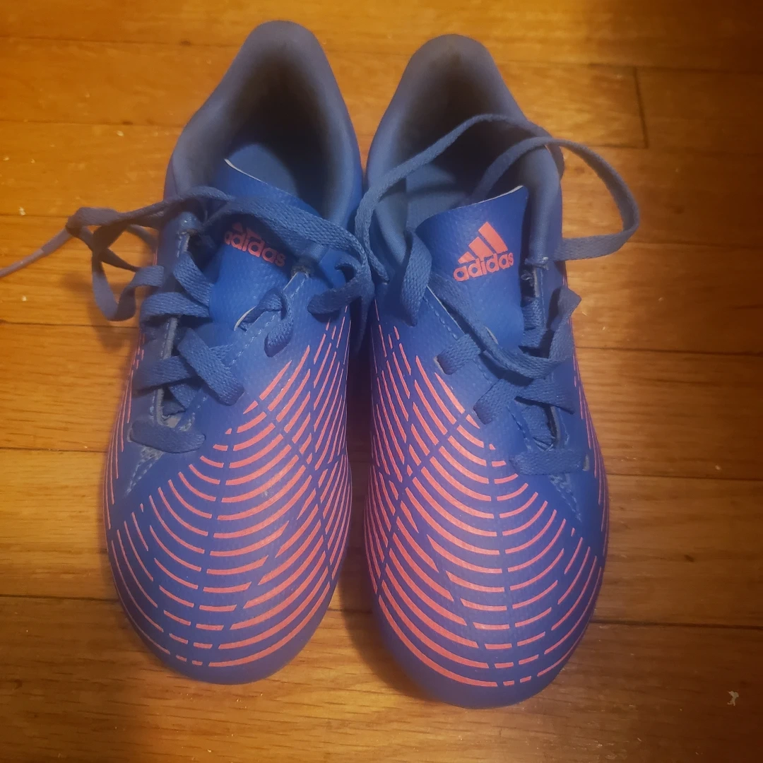 Size 12K, blue and orange. used quite a bit but it's still in great condition to take on the fields.