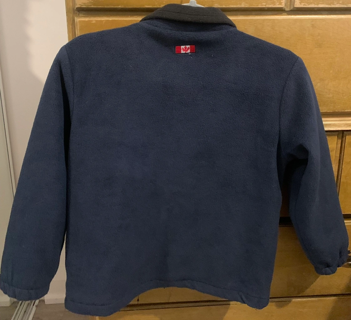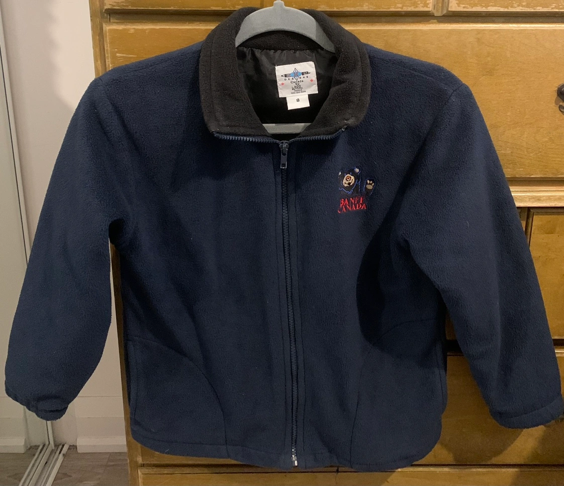 Blue fleece jacket with Banff Canada logo. Zipper closure and black collar. For 8 year old. Used only a few times. Like new. Pick up only - Bloor St West & The East Mall