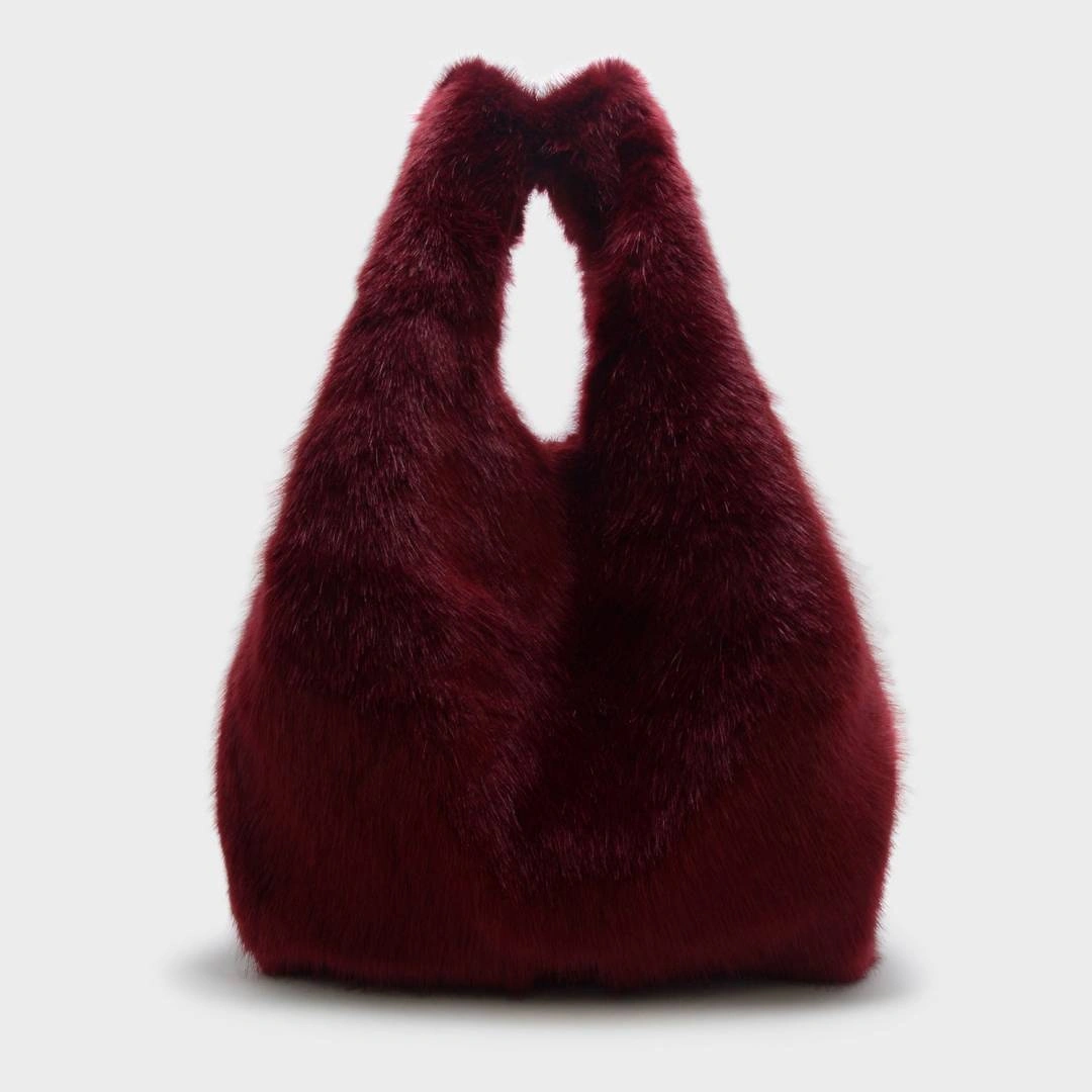 Very cute cherry red furry tote bag featuring double top handles. Faux fur, perfect for fall. Included photos from the original website to show how to style it. Authentic. Bought in Singapore. Only used twice. Selling most of my stuff to declutter. Pick up only. Cash only. Reasonable offers welcome, especially if you're getting multiple items.