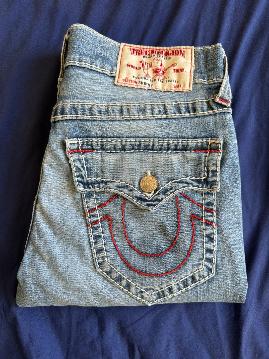 Cash offers or Trade for other True Religion in Size 31-32 Waist Men’s Size 32 Waist x 34 Length Rocco Skinny Fit Big T Stitch Authentic Made in Mexico 🇲🇽 %95 Cotton Great Condition Any Flaws seen in Photos Ask for measurements if wanted Cash Pickup only Oshawa