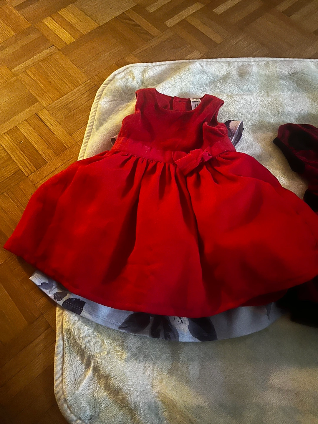 Three dresses in sizes 12 months, 18 months, $10 each, but you can take the three for $20
