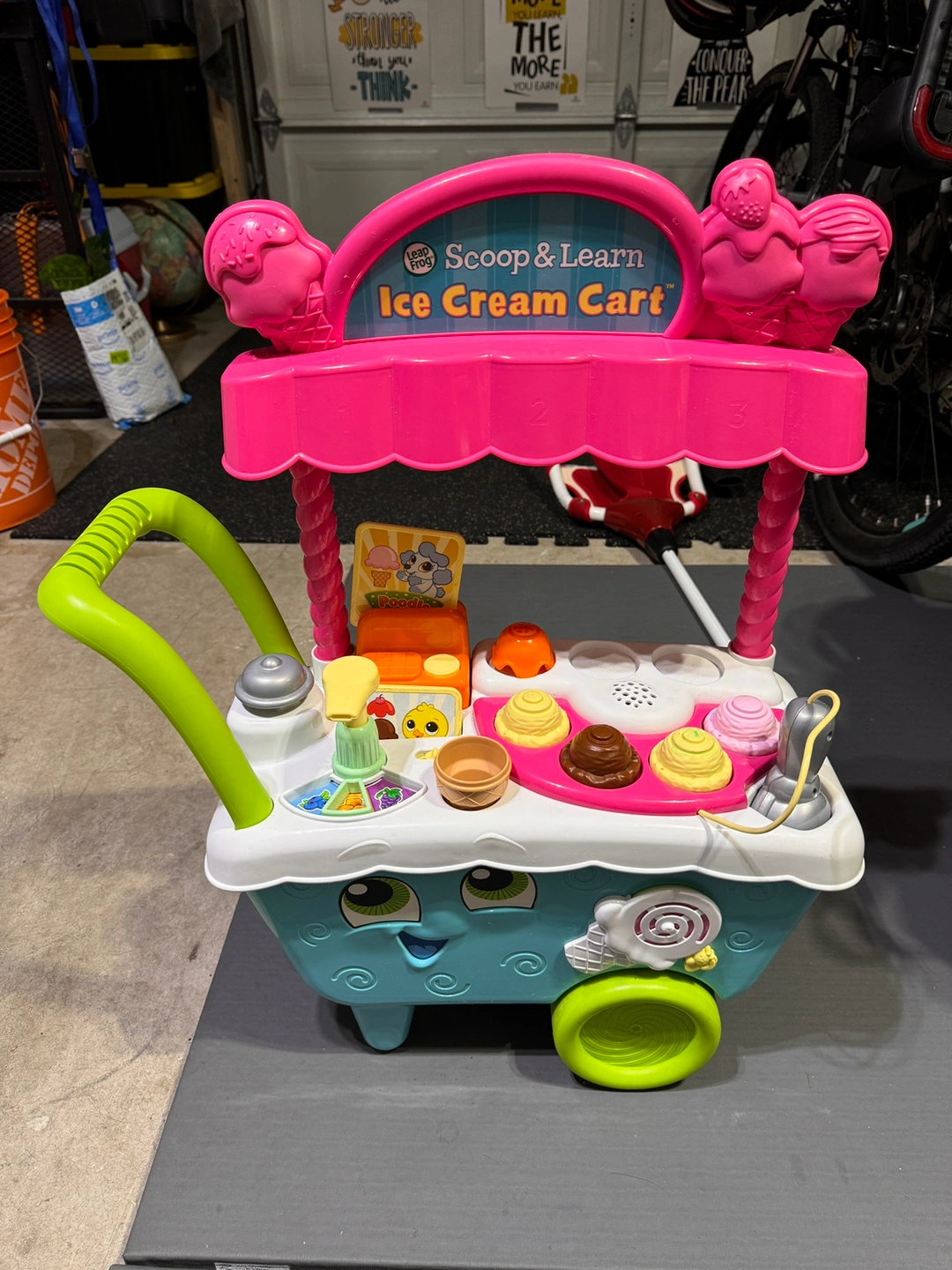 This is a Leap Frog Scoop and Learn Ice Cream Cart toy. It comes with a variety of accessories and is in great condition.