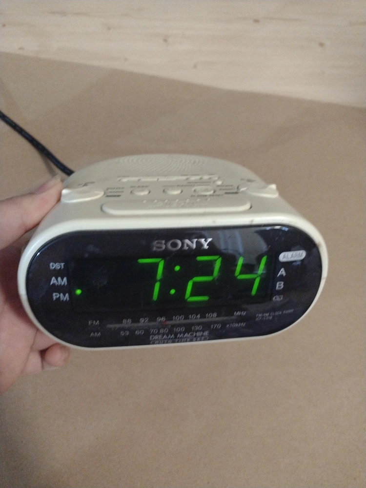 Who needs Spotify when a radio will do the same thing! Wakes you up with 2 alarm settings. A/B This is a Sony Dream Machine clock radio with AM and FM radio features. It also includes a sleep timer and an alarm with two different settings. Sony dream machine icf-c318 Product details https://www.sony.com/electronics/support/radios-clock-radios/icf-c318/faqs it is a Sony and it still works fine!