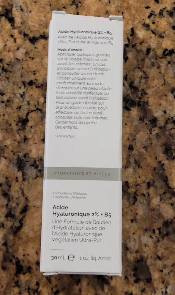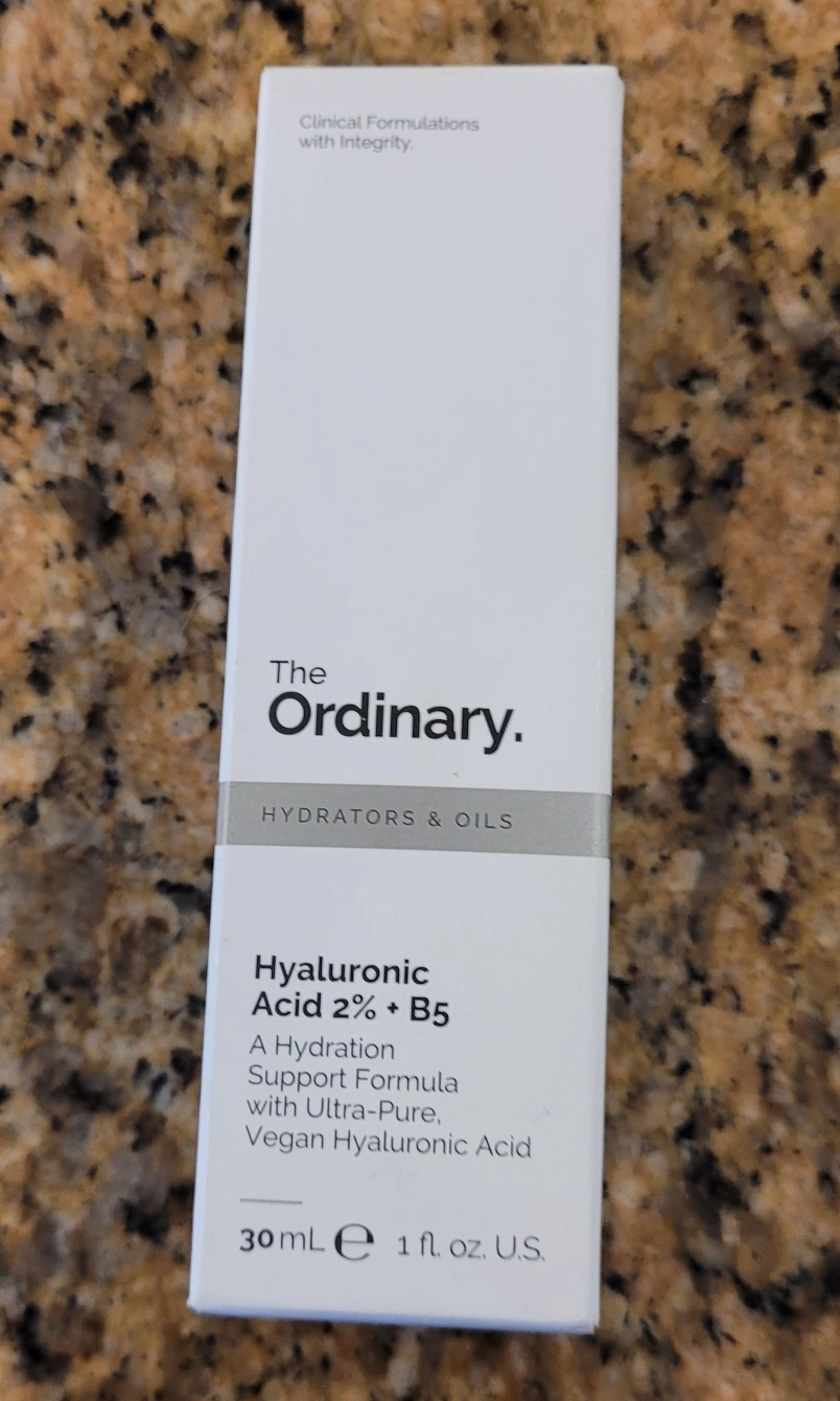 A new bottle of The Ordinary Hyaluronic Acid 2% + B5 serum. The bottle is unopened and full. Comes from a smoke & pet home. Sells at Sephora for $13: https://www.sephora.com/ca/en/product/the-ordinary-hyaluronic-acid-2-b5-hydrating-serum-P427419?country_switch=ca&skuId=2735132&om_mmc=ppc-GG_20553540193___2735132__9198282_m&gad_source=4&gclid=CjwKCAjw3P-2BhAEEiwA3yPhwLERtrElfWbKHU79LG3rkIIsDyR4vfpzLlMbdby_Qxn9VWha43MZPBoCBEgQAvD_BwE&gclsrc=aw.ds