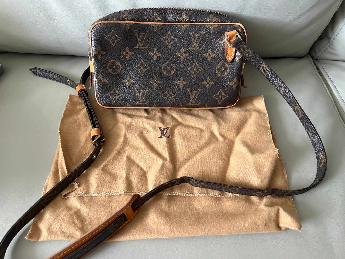 Authentic Classic Louis Vuitton Monogram Pochette Marly Bandouliere. Includes a dust bag. Minimal wear and water stain but still in good condition. Pick up only