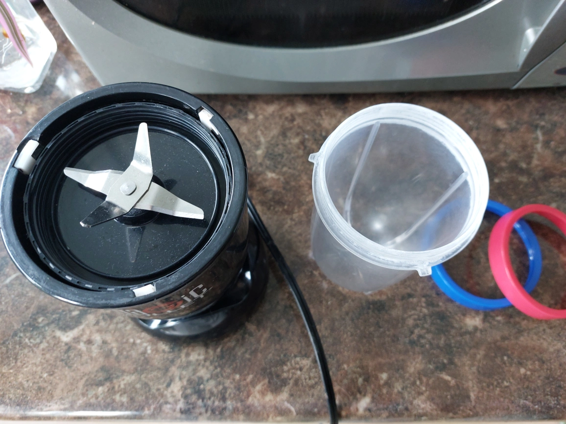 Magic Bullet in good condition. Comes with everything pictured. It just needs the rubber ring on the inside.Can meet on Bloor line from Ossington to Main Street and Yonge/University line downtown. Available late morning to early afternoon on the weekends, and occasionally in the evening after work during the week.