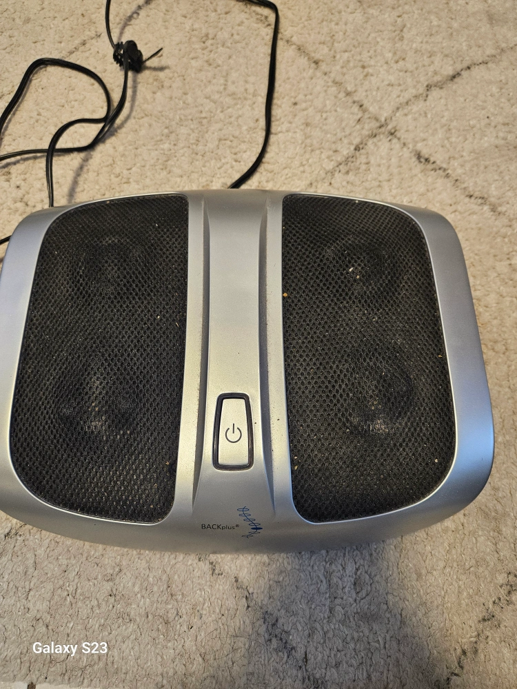 This is a Backplus Shiatsu Foot Massager. It is in used condition. It includes a power cord. Please look at the pictures for more information.