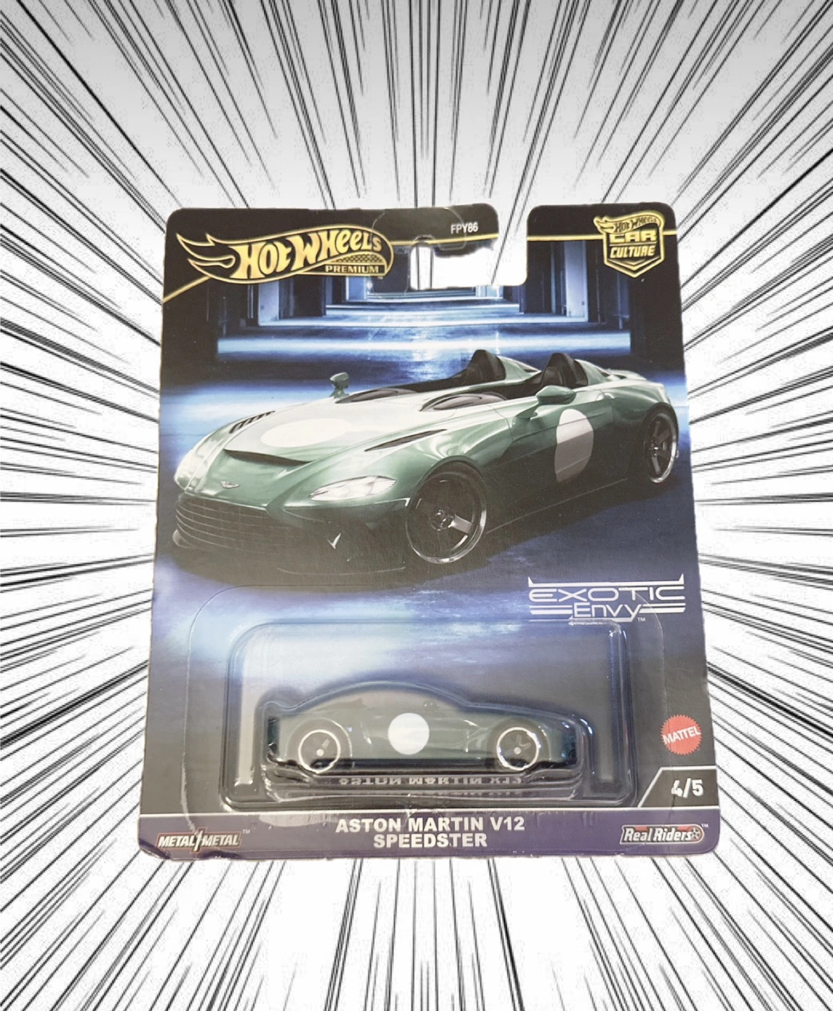 This is a 1:64 scale die-cast model car from the Hot Wheels Premium Exotic Envy series. The car is in the colour green.