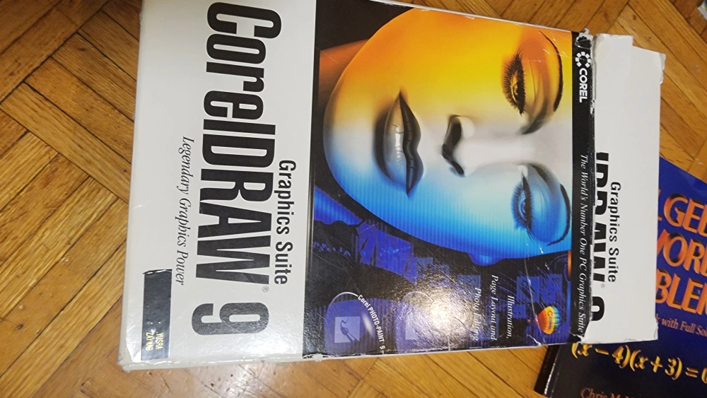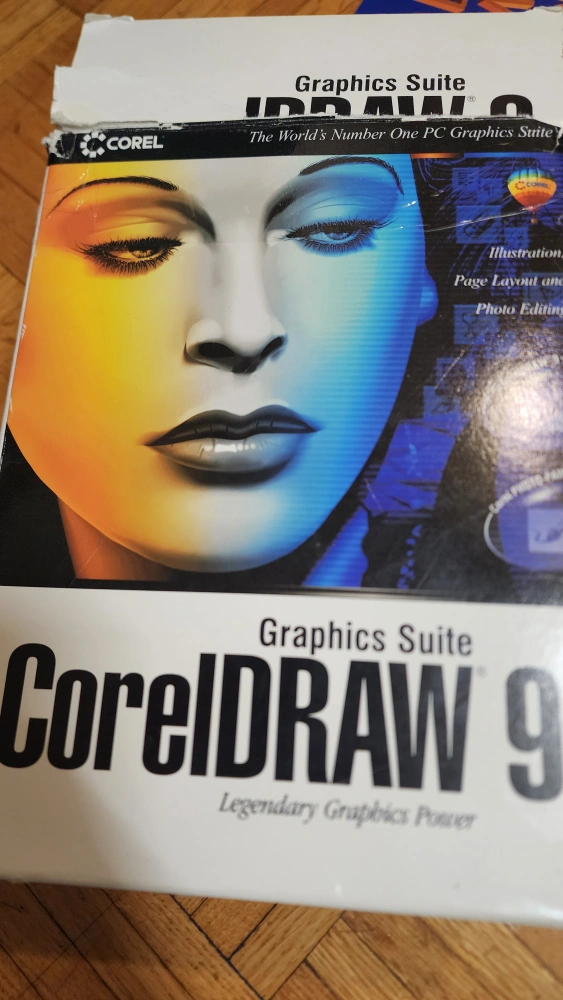 This is a boxed copy of CorelDraw 9 Graphics Suite, a popular graphics software program.