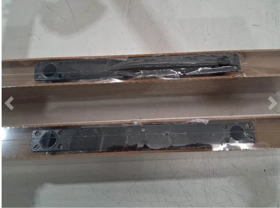 One of the wall mount has a dent on the back side of it - should not affect the function and should not be seen once installed as it is on the back side.