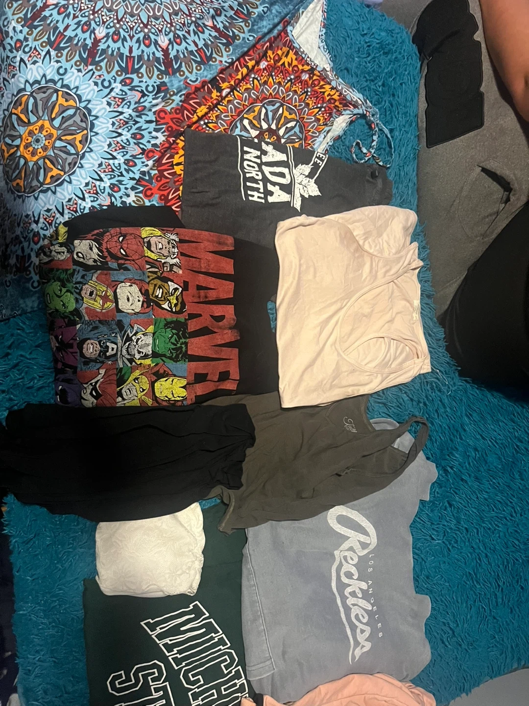 Three bags of clothes, two bags are shown the third bag is full of hoodies. All are gently used and in mostly good condition most of them are namebrand as well.