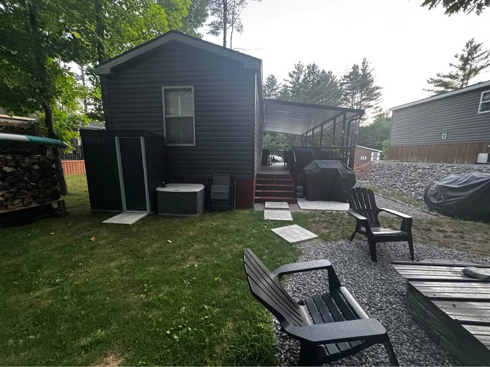 We are selling our 2020 park model cottage located at Shamrock Bay resort. The Cottage is located in seasonal private and quiet resort, from May 1st to October 31st, close to all amenities with just a few minute drive to highway 11. We are asking $80,000 all in and with 2025 seasonal fees already paid. The resort Includes two heated swimming pools, park, beach, marina and docks for boats. Seasonal fees are $7200 plus tax which includes water, hydro, maintenance, garbage disposal and more. The Cottage comes with all furniture, outdoor patio set, BBQ, shed and fire wood rack. Any other questions please don’t hesitate to ask. Thank you.
