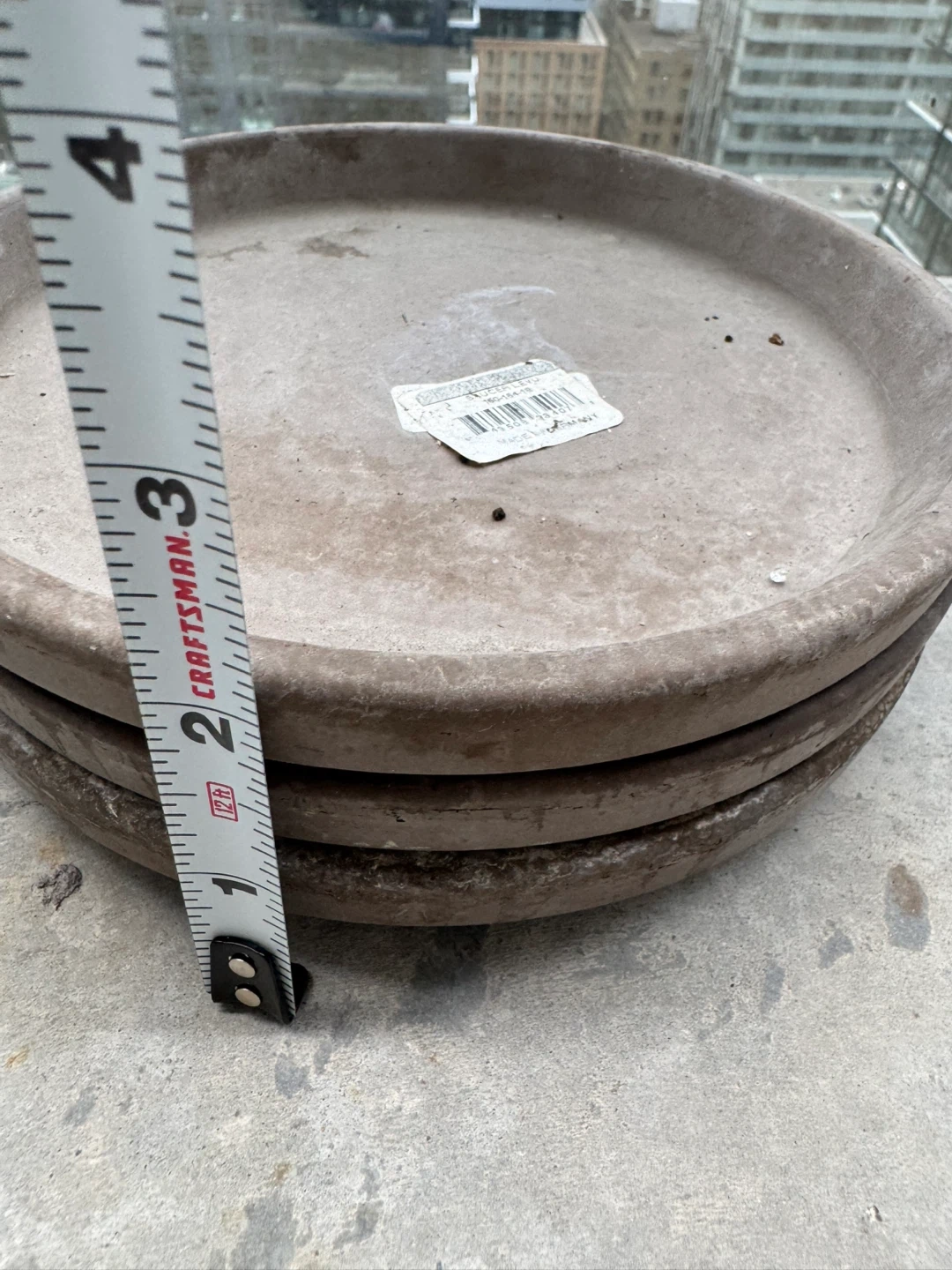 Selling a set of 3 concrete plant saucers. They are about 8 inches in diameter. Perfect for keeping your plants watered and your surfaces protected!