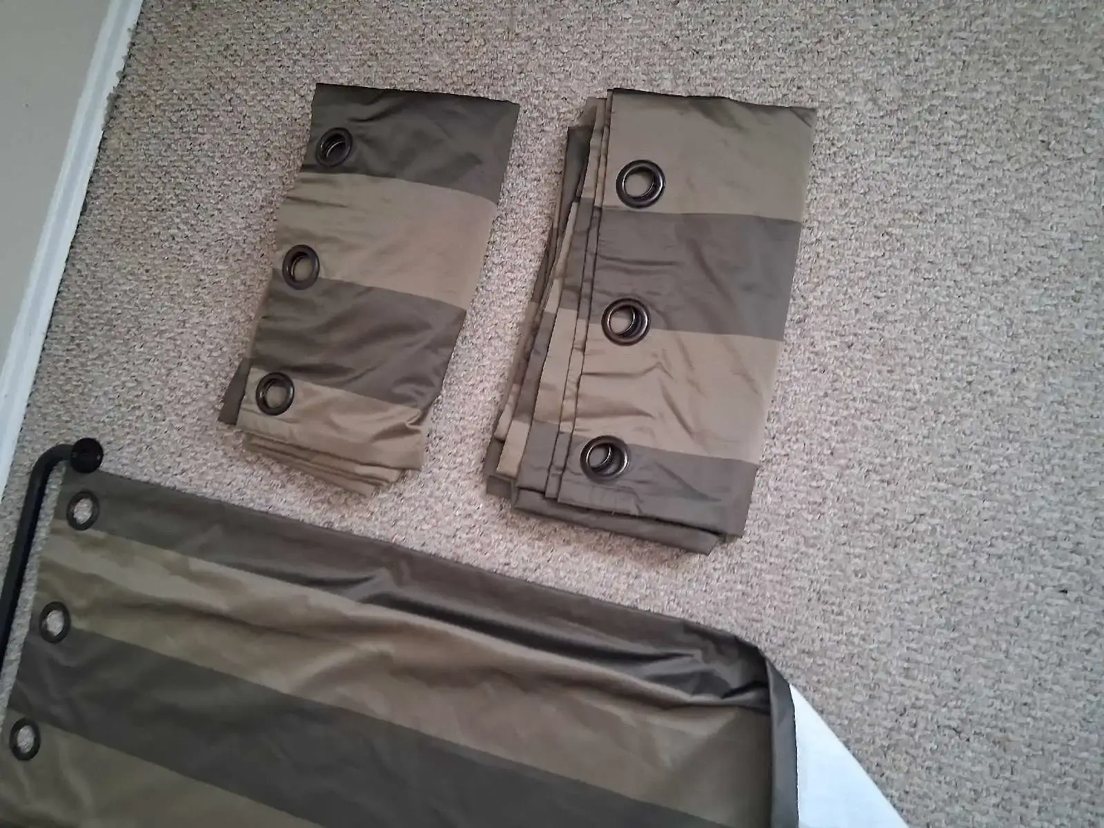 Add a touch of elegance to your space with these stylish IKEA curtains, featuring a chic striped pattern in versatile brown and beige tones and come equipped with a rod. These curtains have grommets for easy hanging and are in good condition, ready to enhance any room's decor. * Colour: Brown, Beige * Includes: Curtain rod These curtains are looking for a new home and are ready to bring a touch of sophistication to your space. don't miss out!