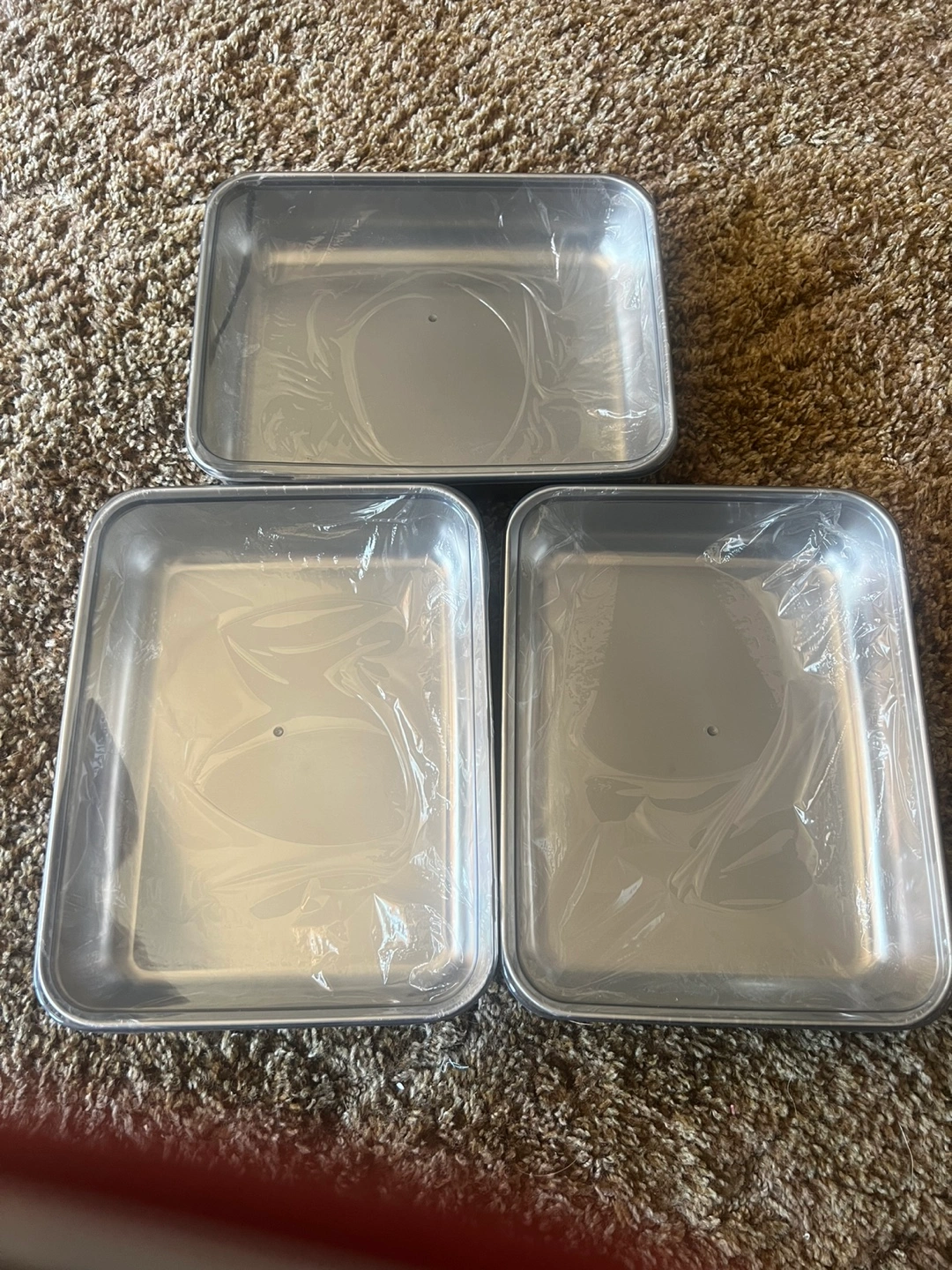 Selling a set of 3 brand new stainless steel baking pans! They're still in their original packaging, ready for your baking needs