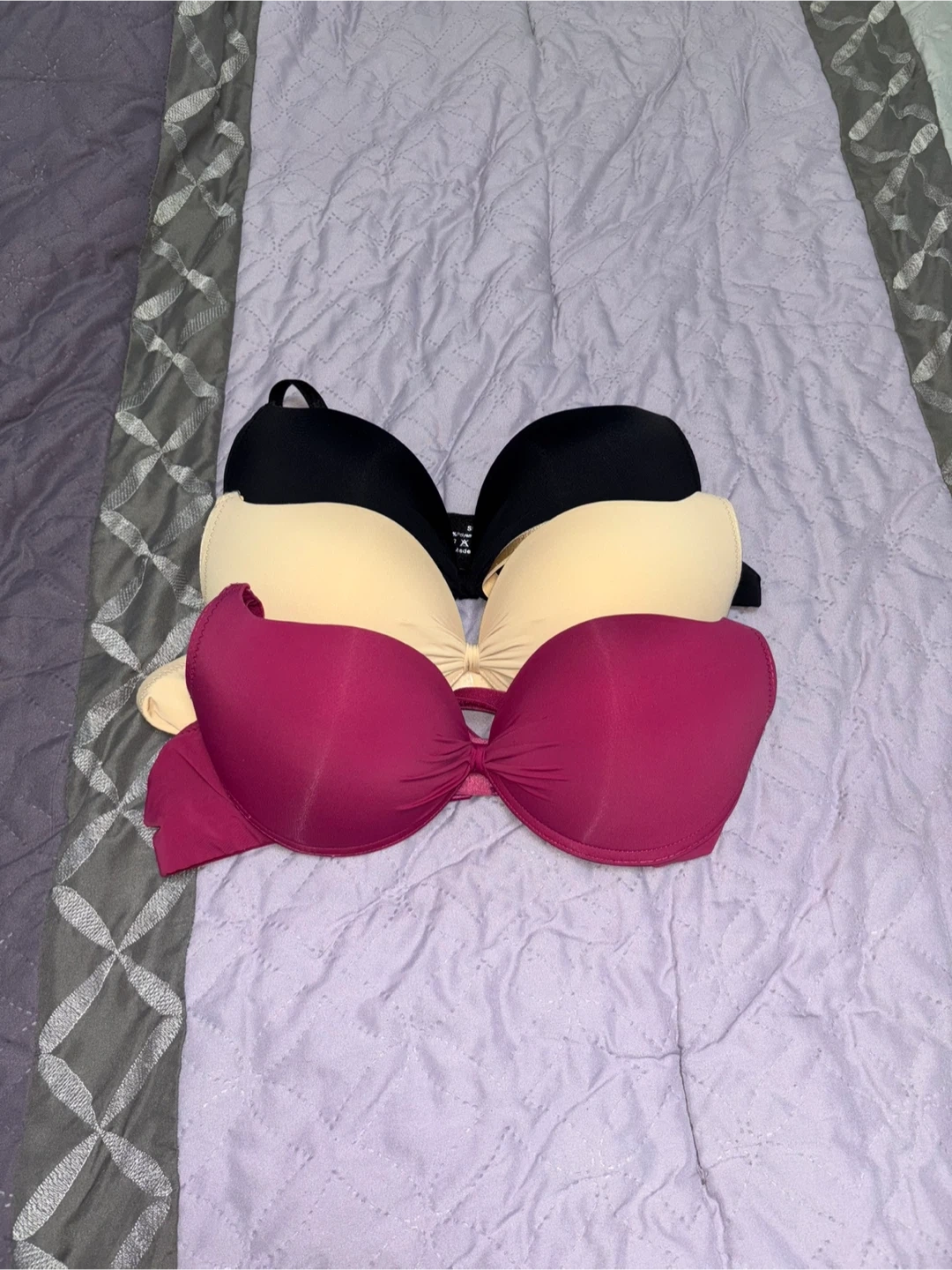 Selling a beautiful bundle of bras in assorted colours (Black, nude & fuchsia). They are brand new, never worn and ready for a new home! Size L but fit like a medium (I’d say approx. 34B-36B) which is why I am selling as they are too small for me. Asking $30 for the bundle