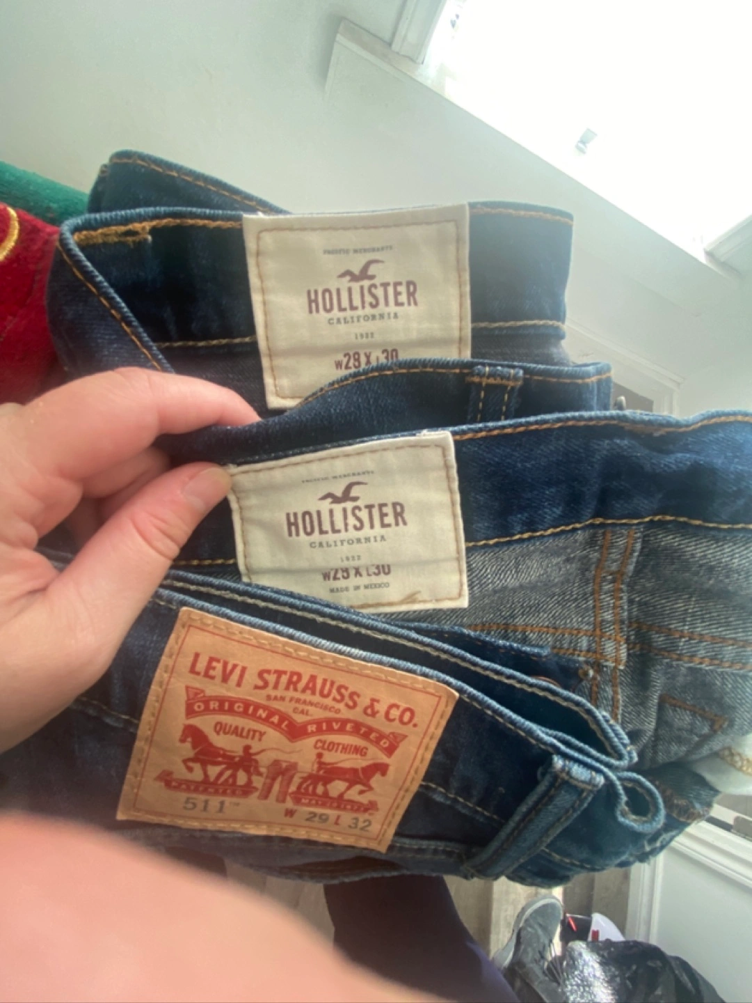 2 hollister, 28 (6) 1 Levi 29 (7) All unworn and perfect condition Bought a year or two ago thinking I was going to lose weight but then gained it instead, been in my closet for a while now $6 each or 3 for 15
