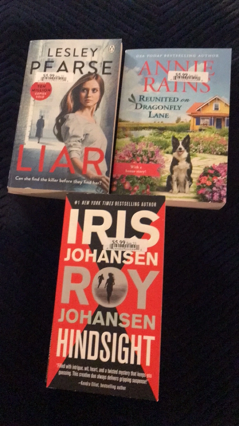 Selling a set of three paperback books. Titles include: - Lesley Pearse - Liar - Annie Rains - Reunited on Dragonfly Lane - Iris Johansen & Roy Johansen - Hindsight All books are in new condition and ready for a new home Just bought from Giant Tiger, read once. No holds FCFS Cash and pickup only x posted