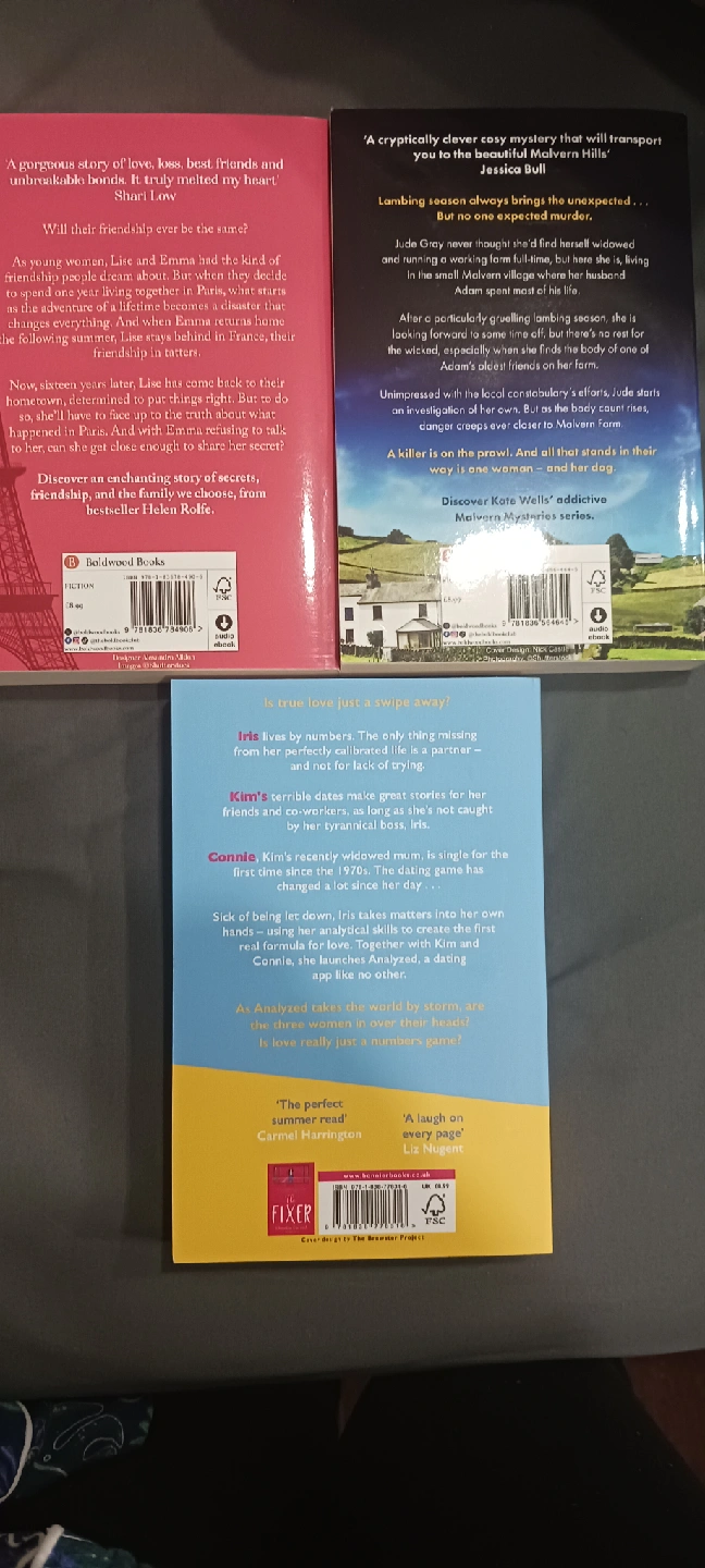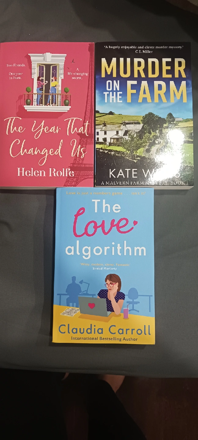 Selling a set of three paperback novels: - "The Year That Changed Us" by Helen Rolfe - "Murder on the Farm" by Kate W. - "The Love Algorithm" by Claudia Carroll All in good condition
