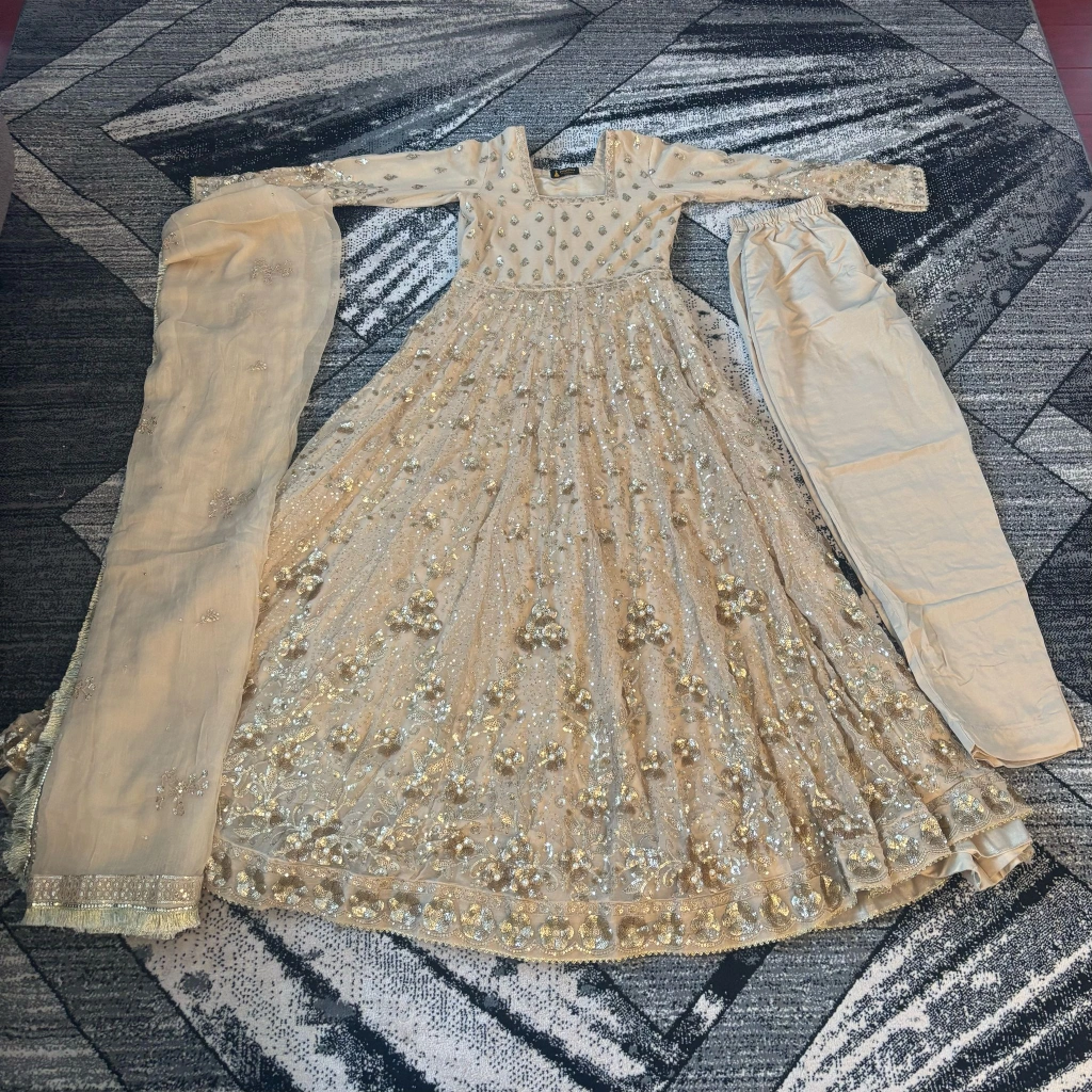 Selling a beautiful Pakistani party dress in a beige colour. Worn only once for a few hours. It comes with a matching dupatta and pants. Perfect for a special occasion!