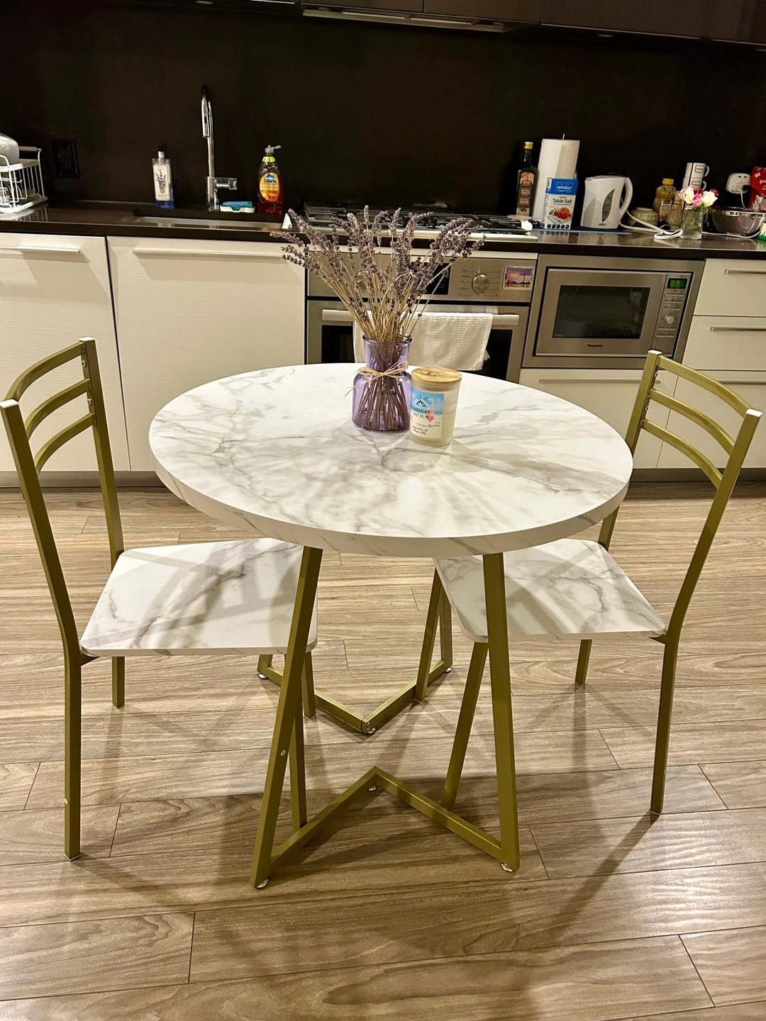 Very good condition, clean, sturdy and stylish. Counter-height round table + 2 chairs — perfect for small spaces or kitchen corners. Original retail was $185 (including tax), asking $140. Pick up any time between Oct 28–30 or Oct 31 before 11 AM at Metrotown Accepts cash or Interac e-Transfer