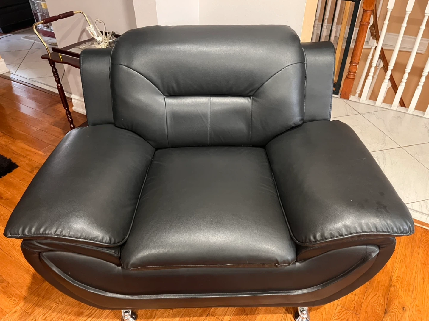 Tufted Leather Armchair & Sofa Set 3 piece