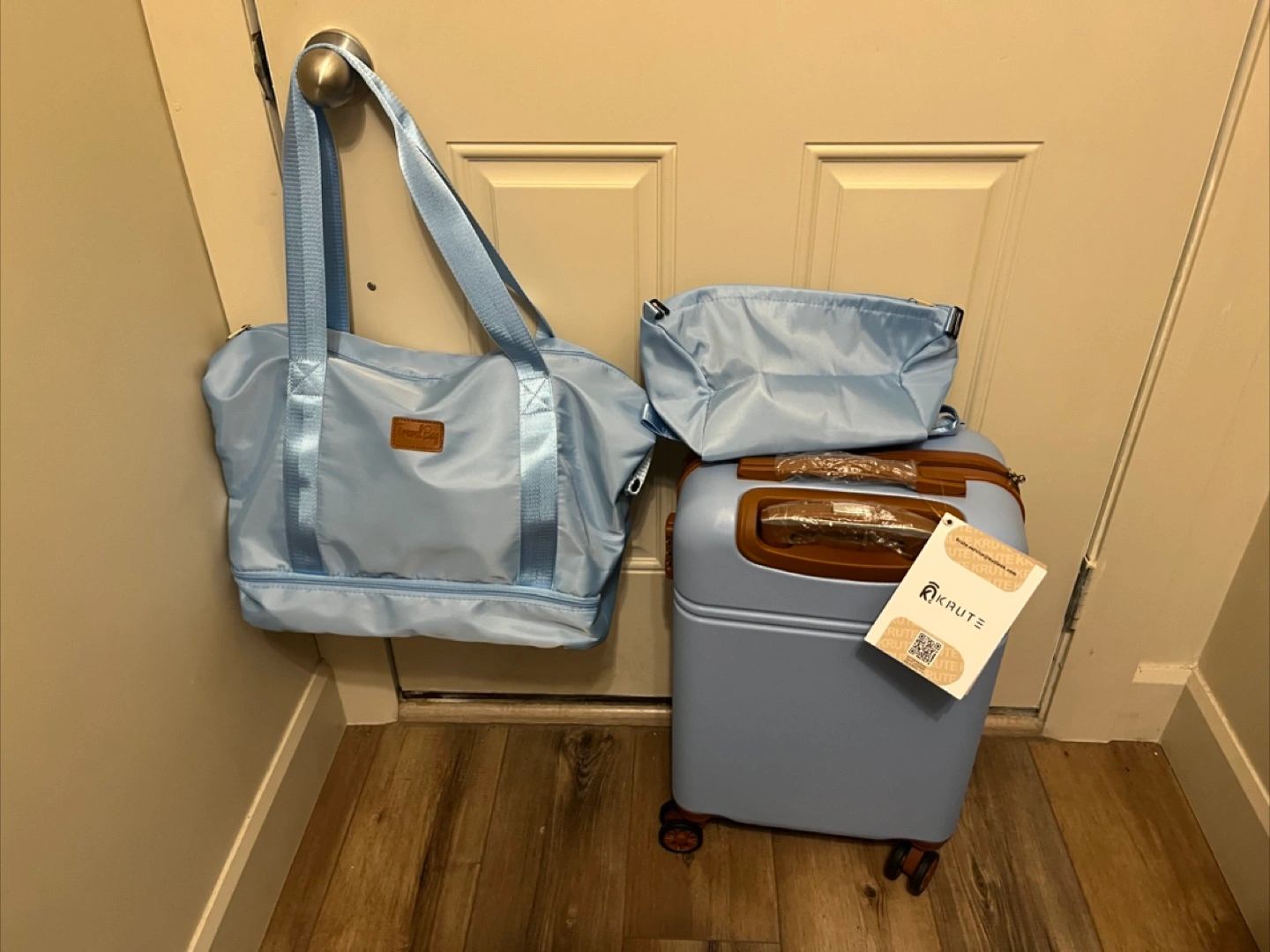 Great luggage with beautiful durable shell, quiet and smooth wheels well sealed, and silky smooth zippers. A stable telescopic pole and ergonomic grip. This has three pieces in all the carry-on luggage has a durable lock.