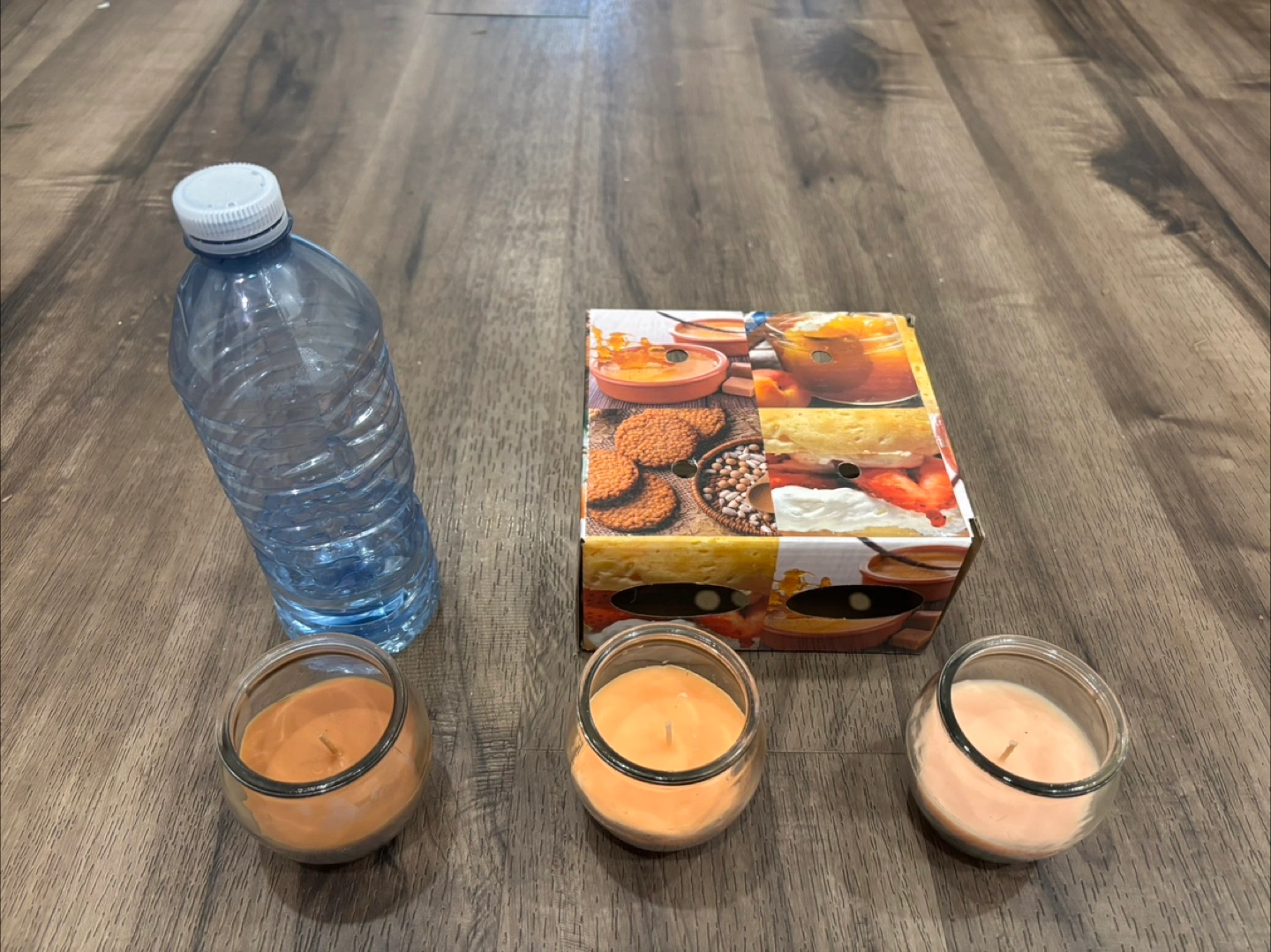 Smoke free home Only used 1 candle out of the 4 pack Candles pictured have never been used Scents are caramel cream peach preserves strawberry shortcake Water bottle is for size comparison $5 for all 3