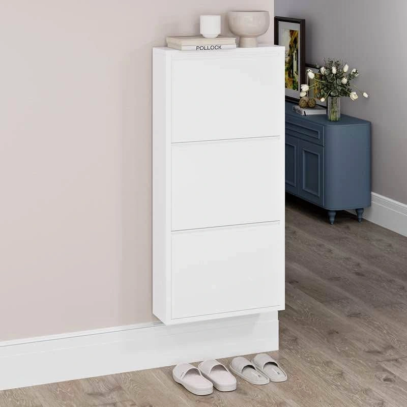 Brand new 3-Tier Flip Down Shoe Storage Cabinet with a small dent at the bottom (does not affect functionality)! Perfect for saving space in your entryway, closet, or any room. Features a sleek white metal finish, three flip-down drawers, and wall-mount design. Details: - Capacity: Holds 6-8 pairs of adult shoes or 9-12 pairs of kids' shoes. - Dimensions: 41.4" tall x 19.7" wide. - Material: Durable steel with a crisp white finish. - Condition: New in box with a small dent at the bottom (cosmetic only). Features: - Wall-mounted design saves floor space. - Perfect for shoes, collectibles, books, or stationery. - Easy to clean and customize your storage layout. Price: $120 Pickup: SmartStop, 2055 Cornwall Rd, Oakville, ON L6J 7S2