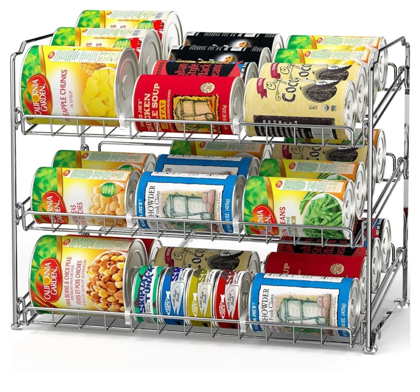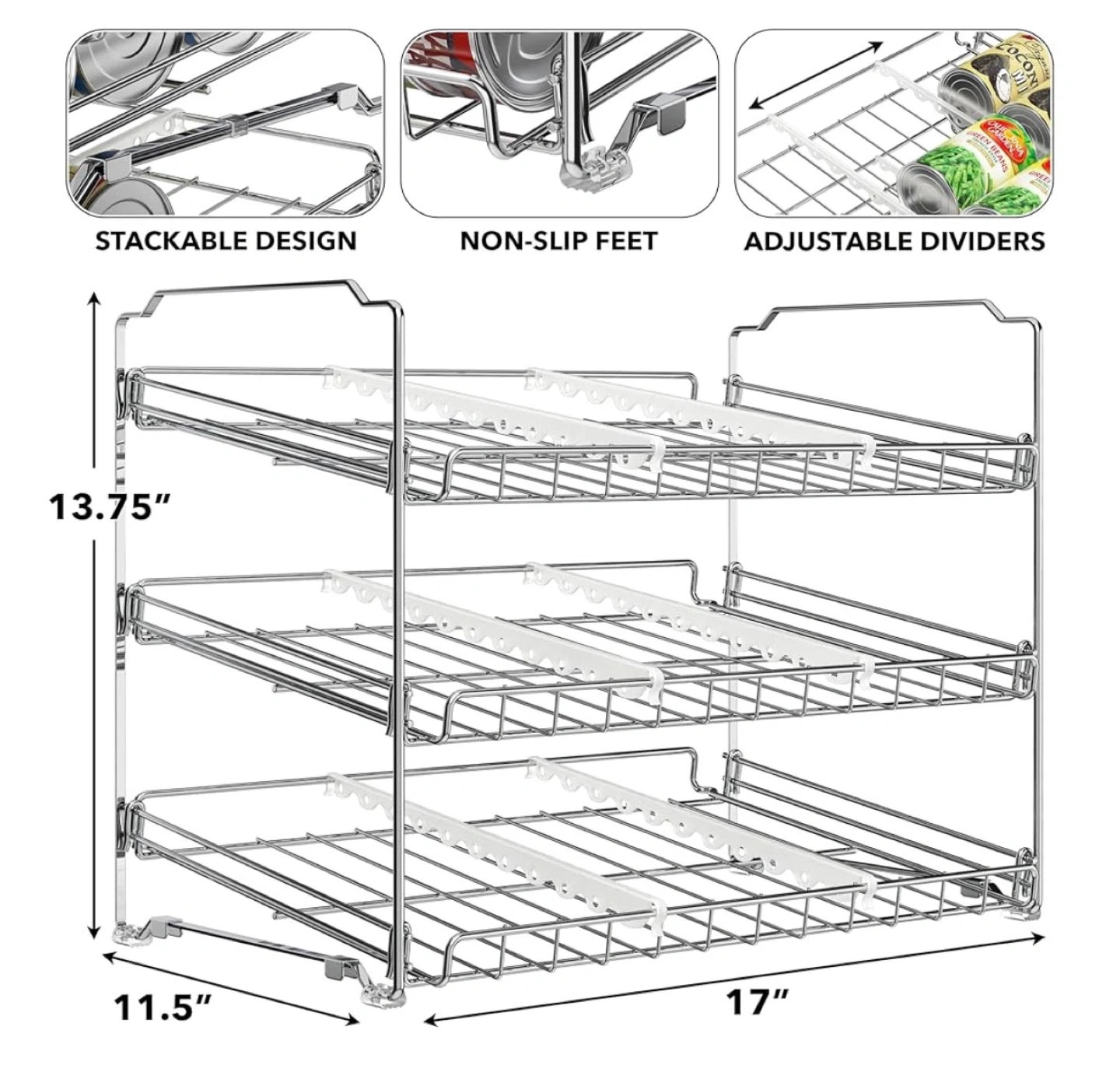 Declutter your pantry with this handy 3-tier stackable can organizer! It's perfect for keeping your canned goods neatly arranged and easily accessible. It features a stackable design, non-slip feet, and adjustable dividers. Pick up at Canon Jackson Drive.