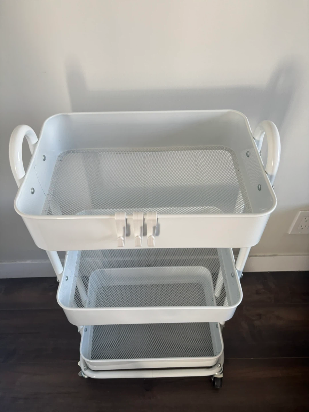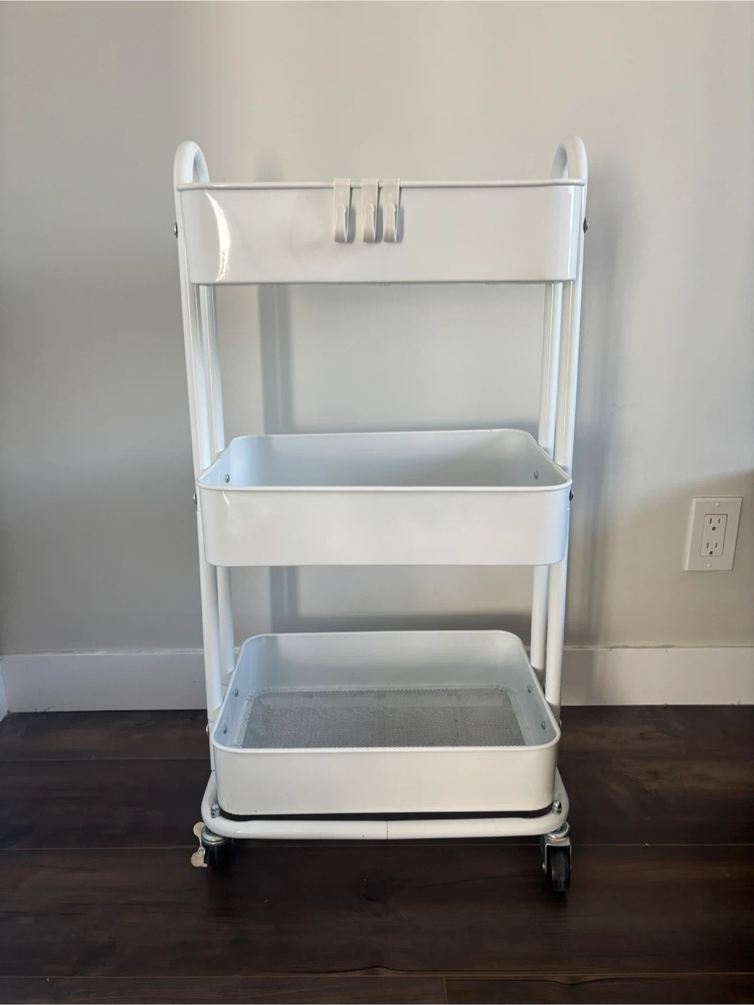 Looking to sell my white utility cart. It's in great condition and holds quite a bit. It’s easy to move around and is assembled.