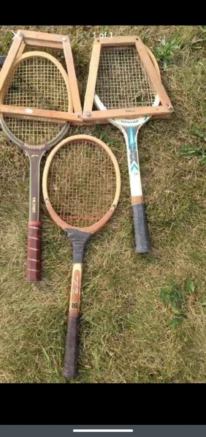 3 vintage wooden tennis rackets