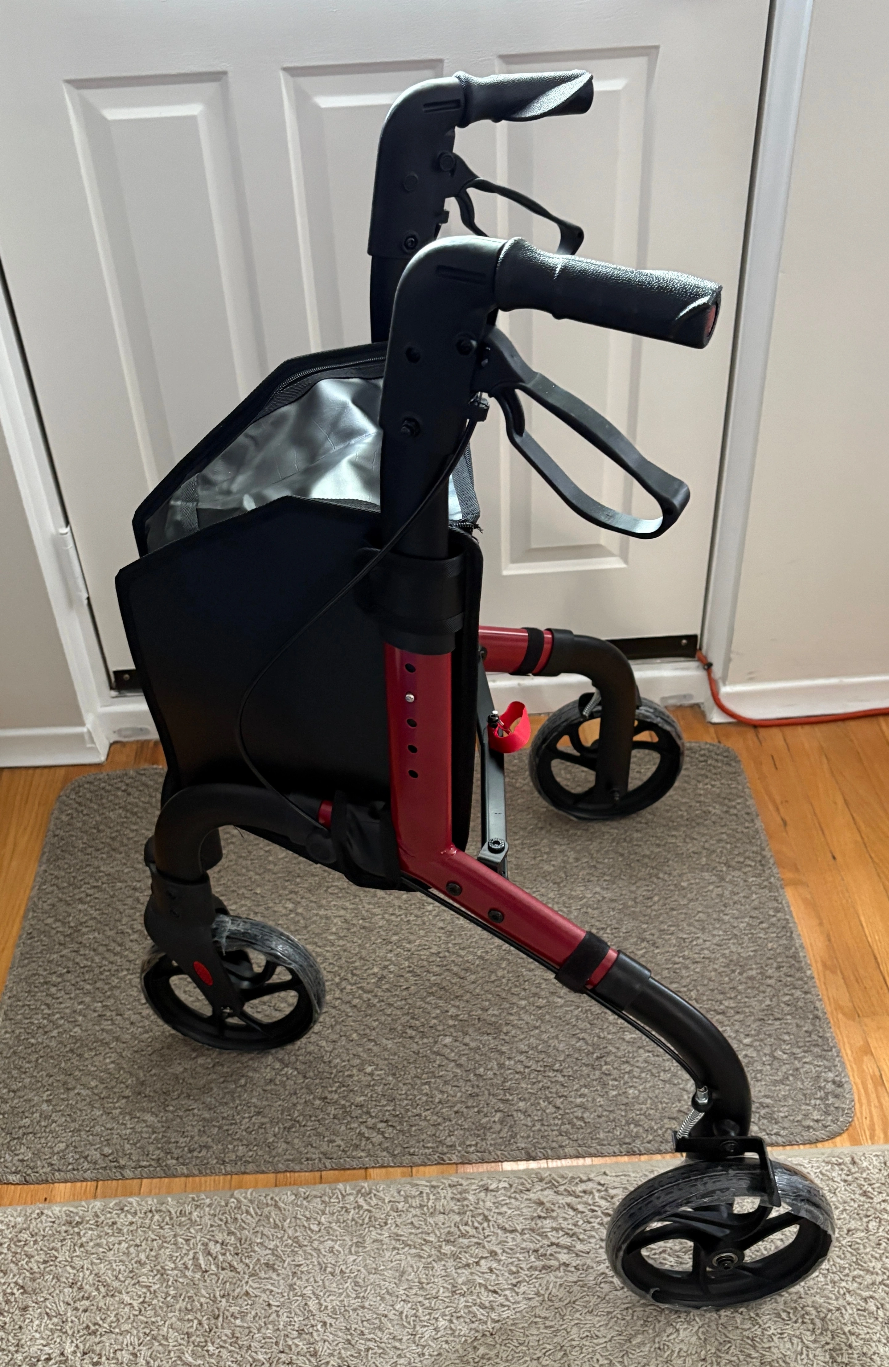 Retaoldth Premium 3 Wheel Rollator Walker I've fully assembled the unit, so it's ready for immediate use. This unit retails for $170 plus tax. Crafted from premium lightweight aluminum. Weighing in at only 12 lbs, it's effortlessly portable and can support up to 300 lbs. In just a second, it folds and unfolds, fitting into any environment effortlessly. Walking in narrow spaces, transporting it in your vehicle, or storing it has never been easier. Ergonomically designed with comfortable handles, this rollator foldable walker suits anyone with a weak grip or arthritis. The lightweight walker is easily adjustable for your ideal comfort level.