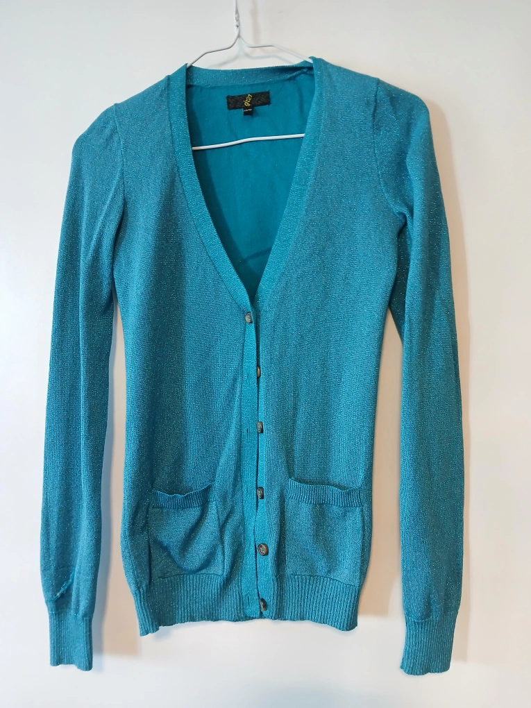 *Cash and pick up ONLY at location shown on ad. NO trades. Non-negotiable. All 4 for $10. FIRM. 3 long-sleeved cardigans in blue, pink, and purple. Button closures, pockets, and ribbed detailing. 1 Flannel Top.