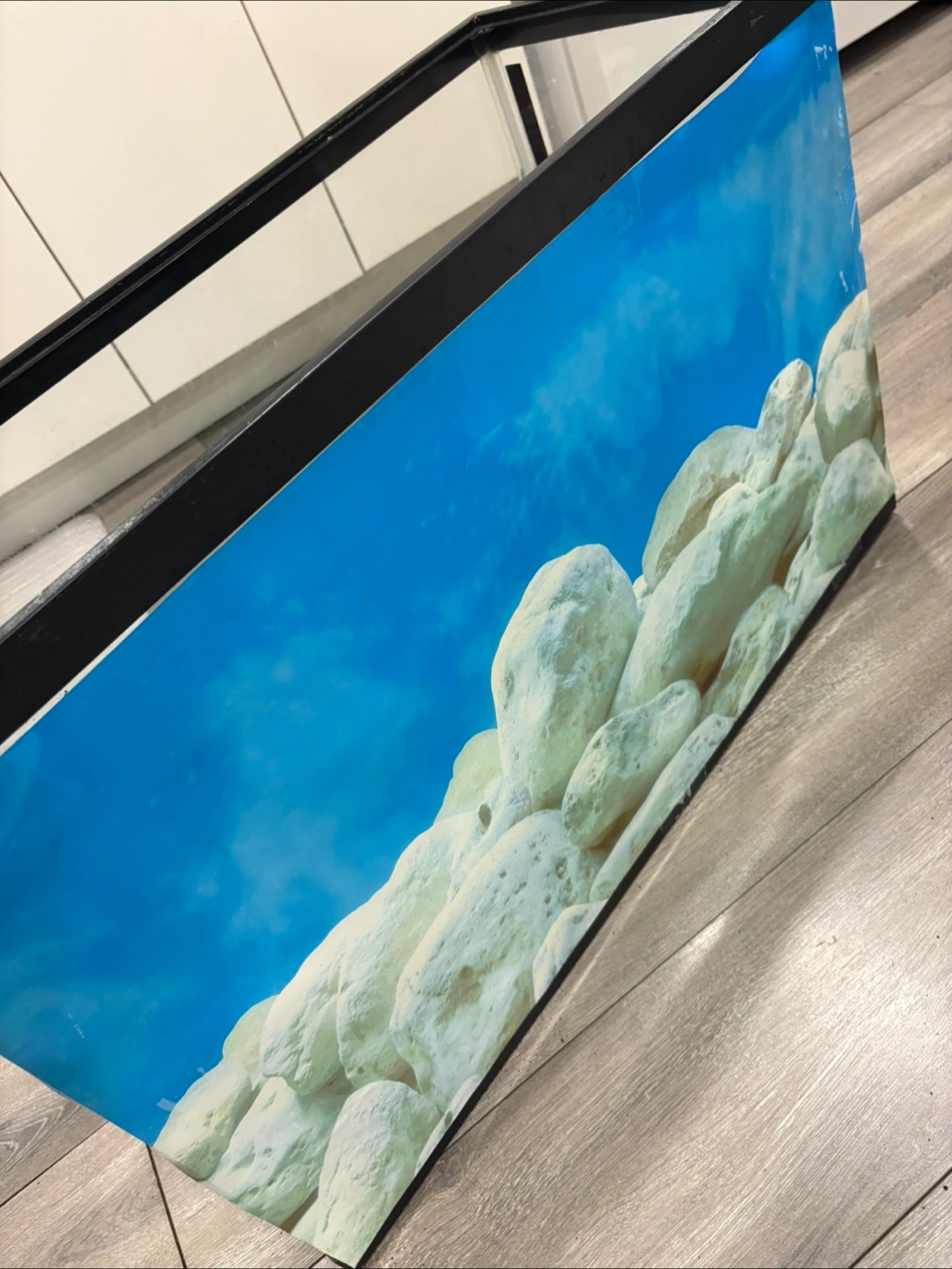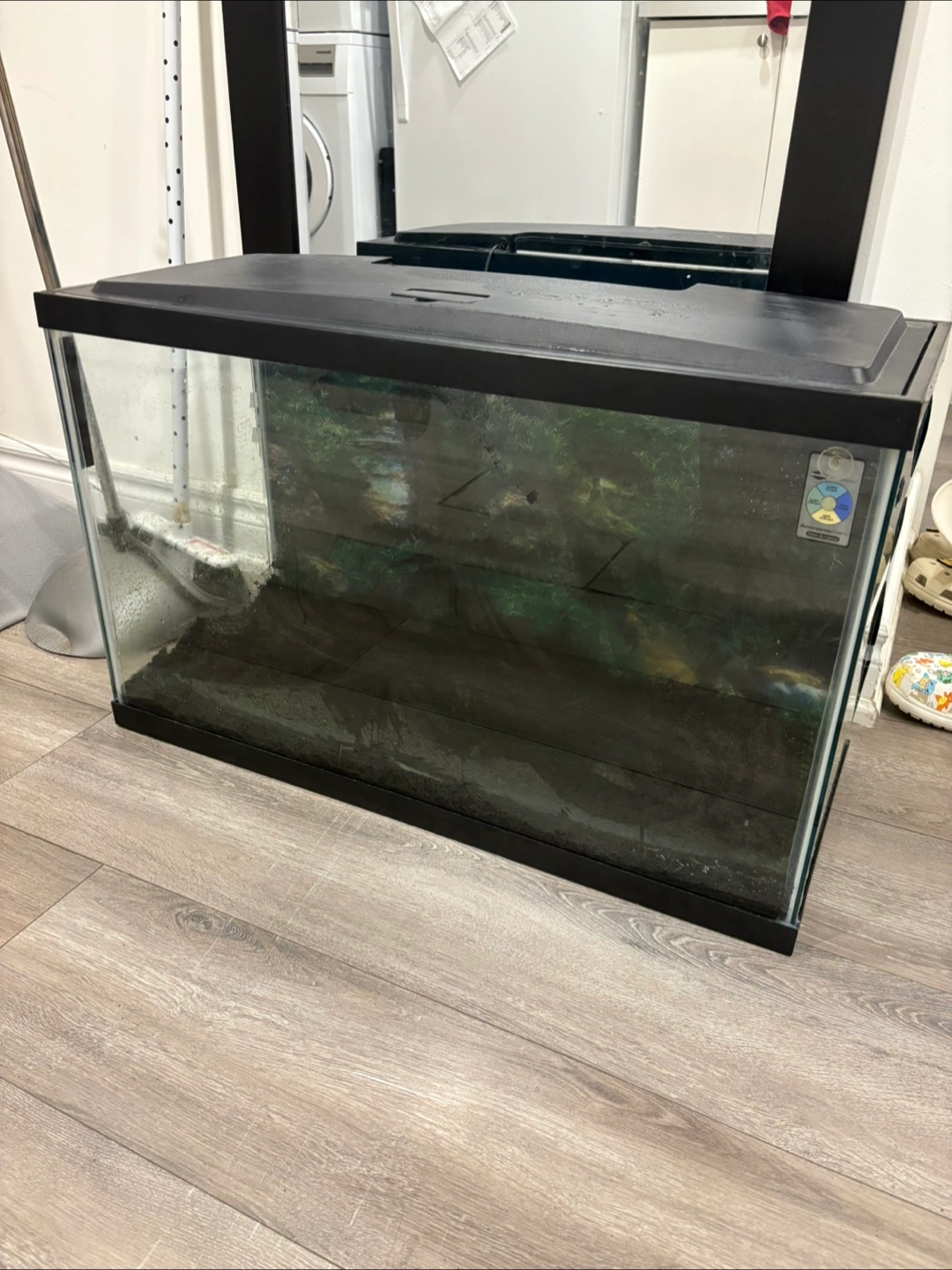 Tank is in fantastic condition and light is tested and working like new. Includes black sand substrate for free. Comes with 4 different background and are interchangeable and can be removed if you don’t want one. (Solid black or blue, greenery or ocean sand) Aquarium was $225 new Sand was $60 new Optionals: I have a Seachem Tidal 75 filter I can include for $50 (paid $100 new) I have a Aquel ultra 150W heater for $40 I paid $80 I also hate tons of decoration and fish food, sponge filters air pumps and other stuff. If you want a bundle deal just ask and I will work out a good deal for you