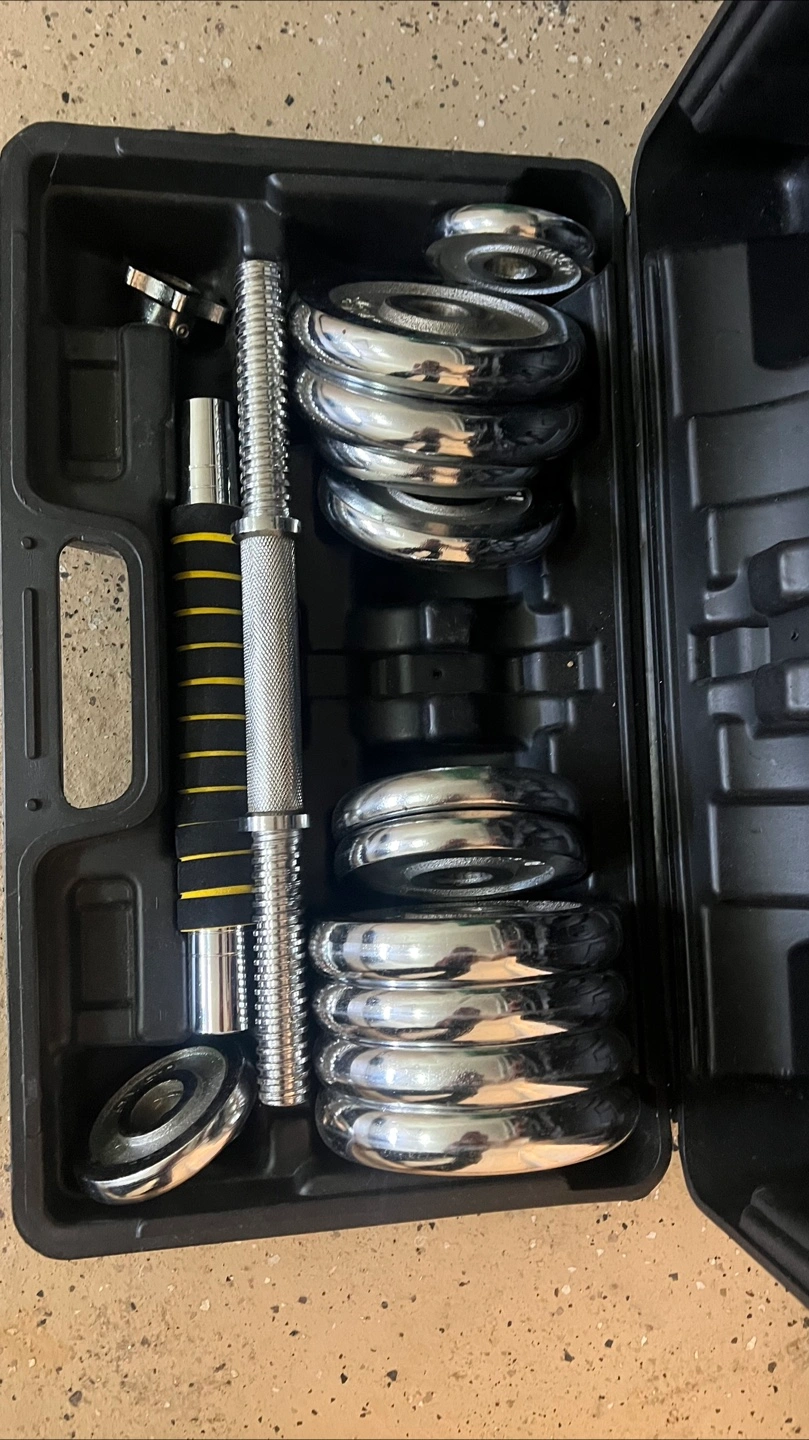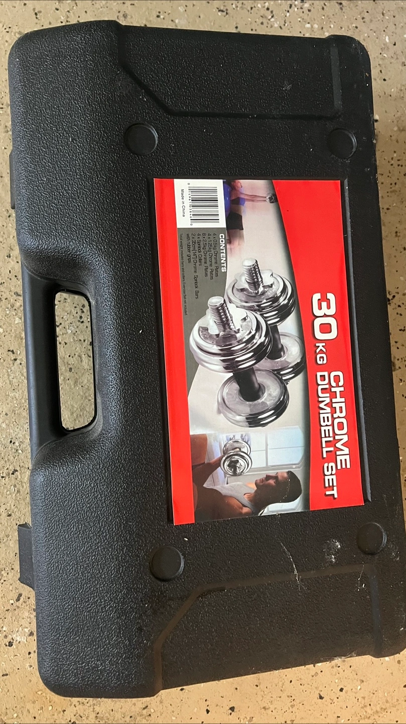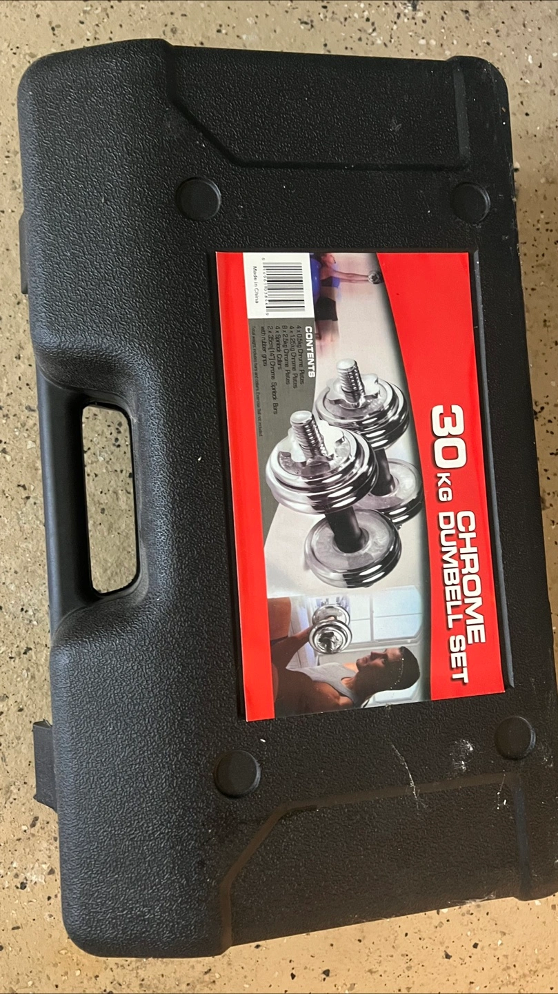 Selling a 30 KG Chrome Dumbbell Set. It comes with its case and all the weights. Great for home workouts!