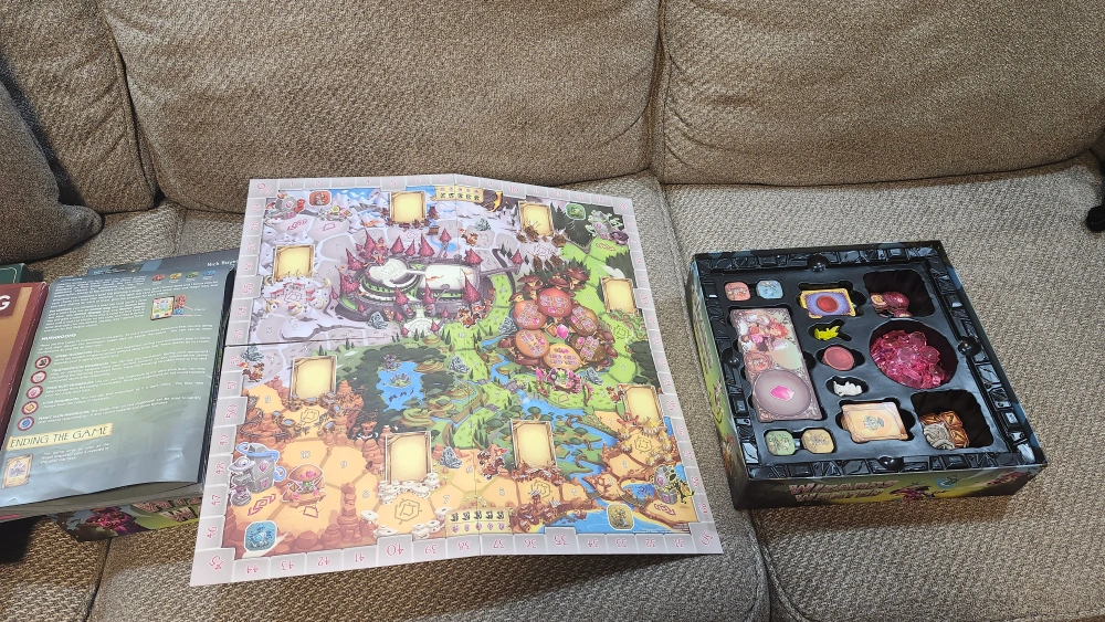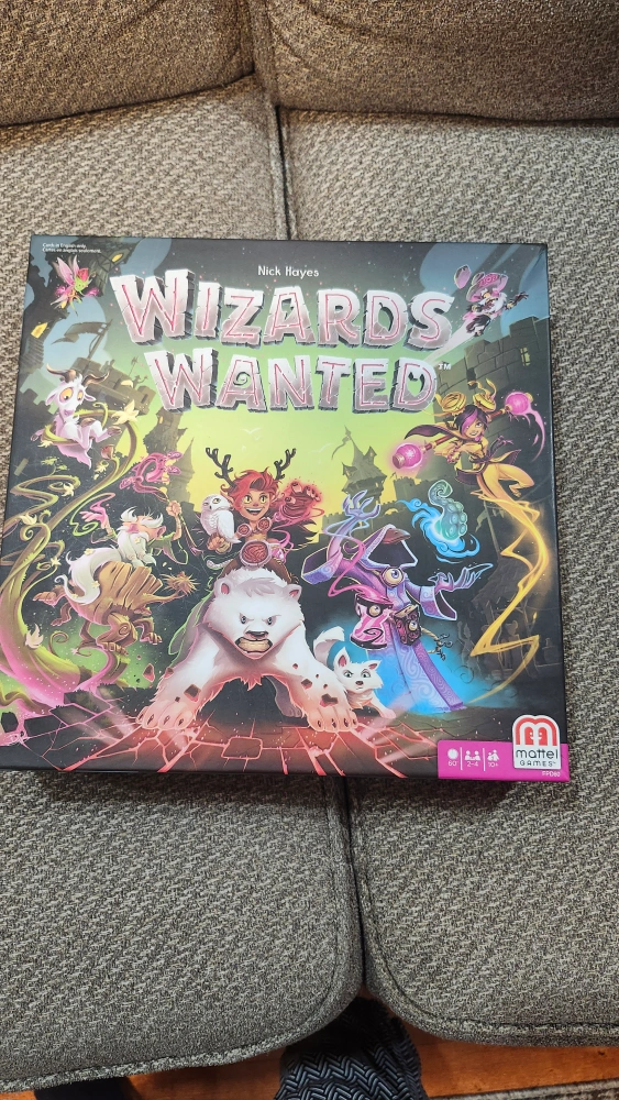 The game Wizards Wanted is a family-friendly board game for 2-4 players ages 10 and up. It's a fast-paced, competitive game where players race to collect the most magical creatures. The first player to collect 5 creatures wins! The game takes about 60 minutes to play.