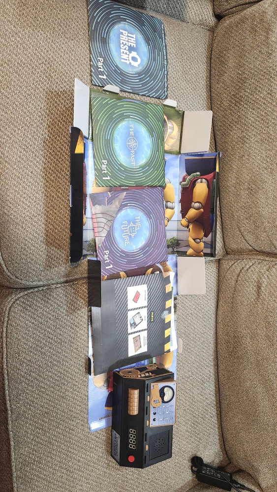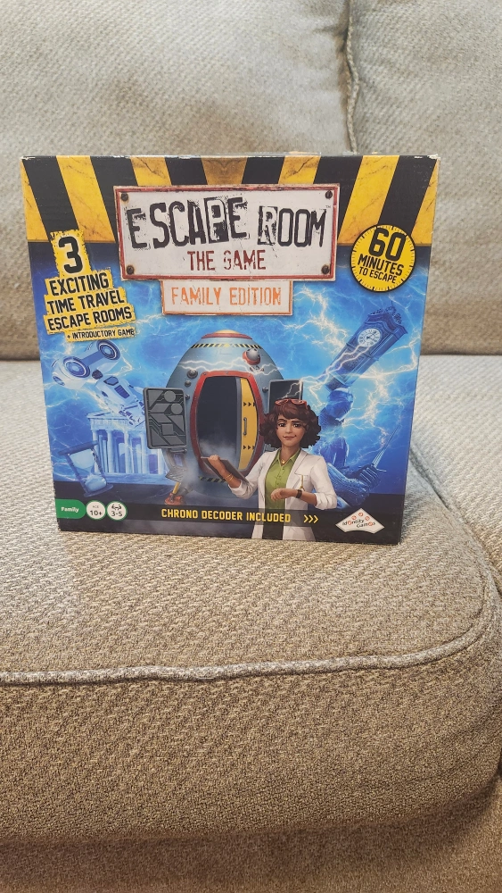 Includes 3 exciting time travel escape rooms, a Chrono Decoder, and a game manual. bought from Walmart for $60. decluttering. Just opened once , never used. Will al the parts intact and a enjoyable game for whole family.