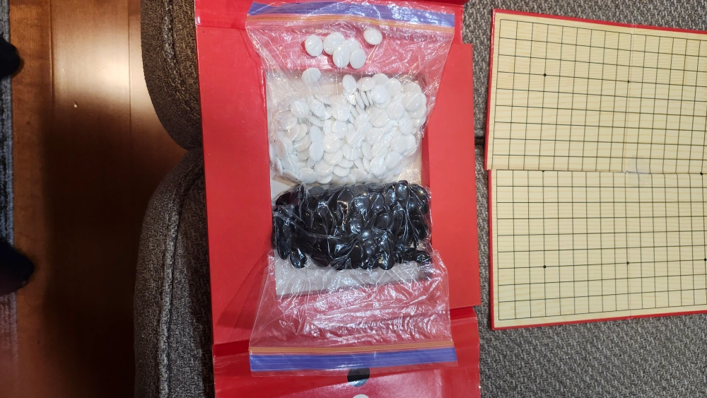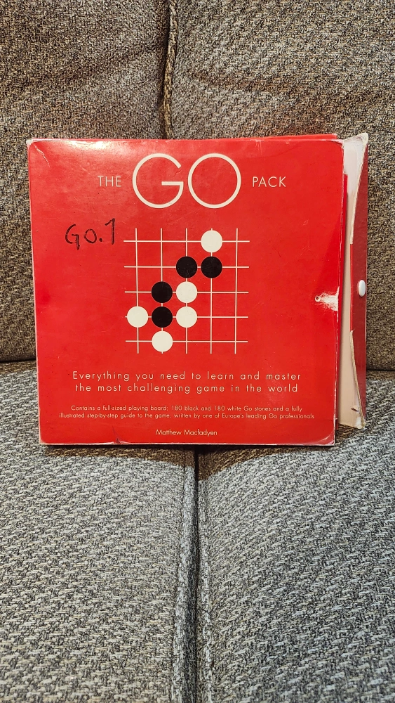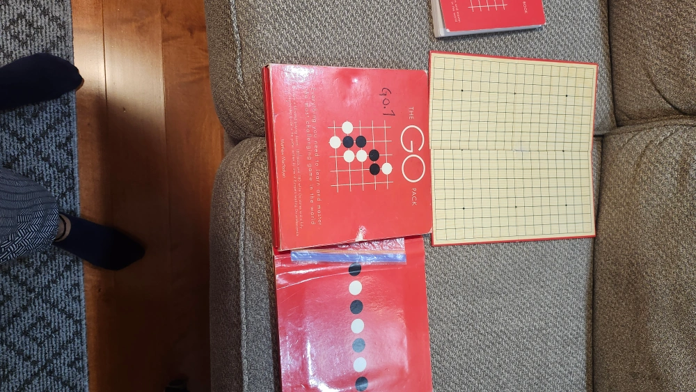 A Go board and a book about the game. worlds most challenging game for kids and adults alike. contains a full sized playing board, 180 black, 180 white go stones and fully illustrated step by step guide to the game.