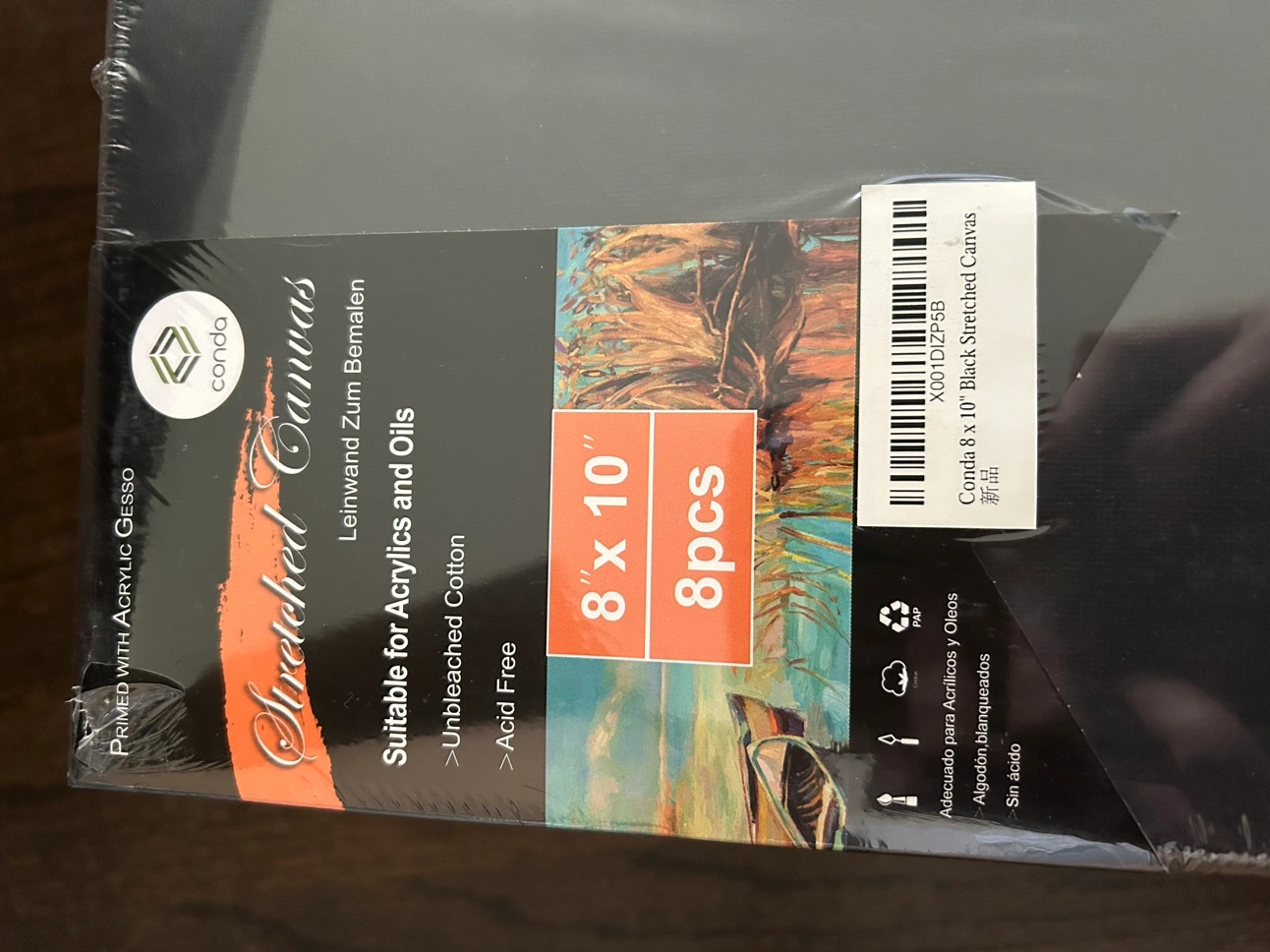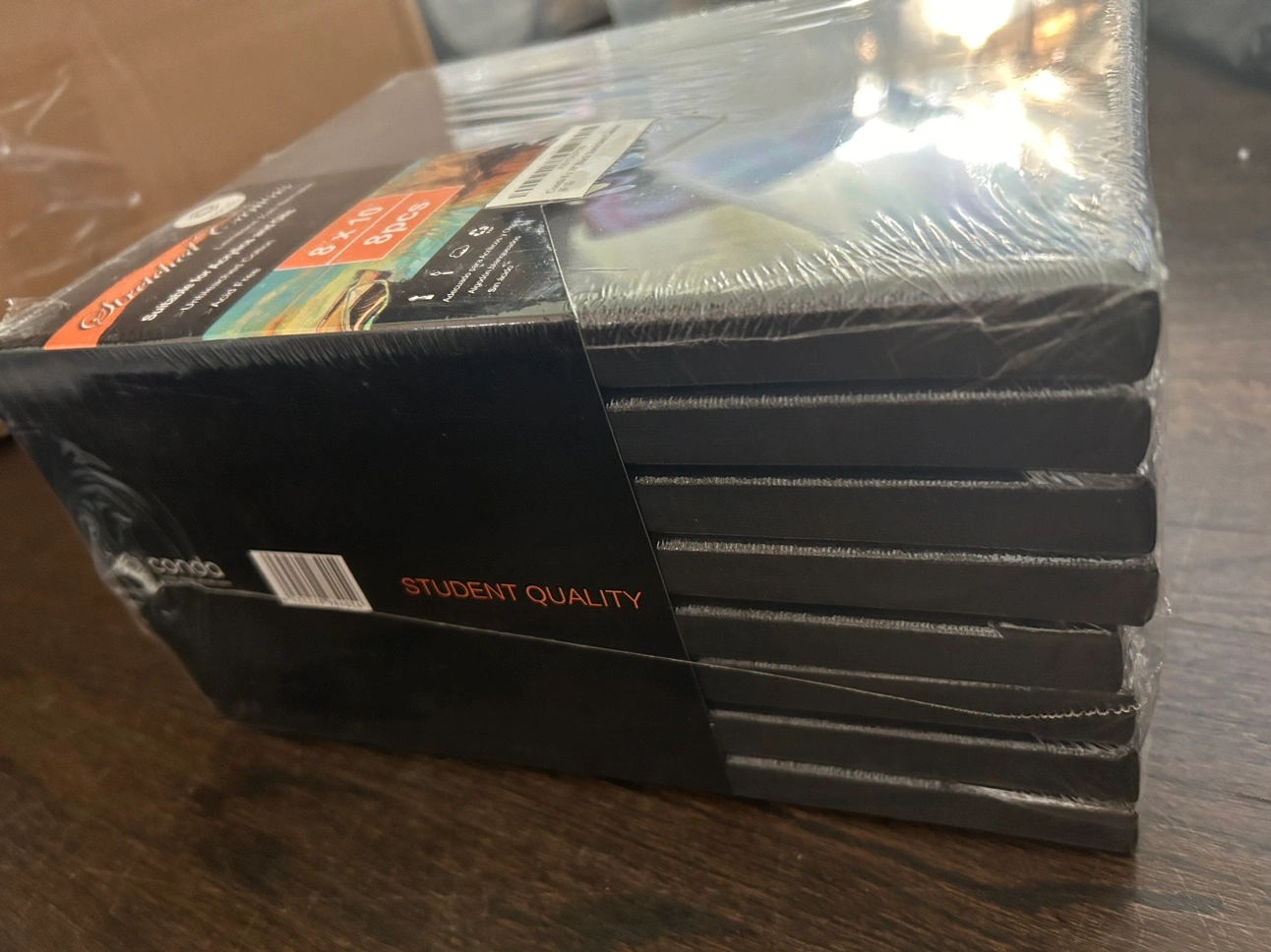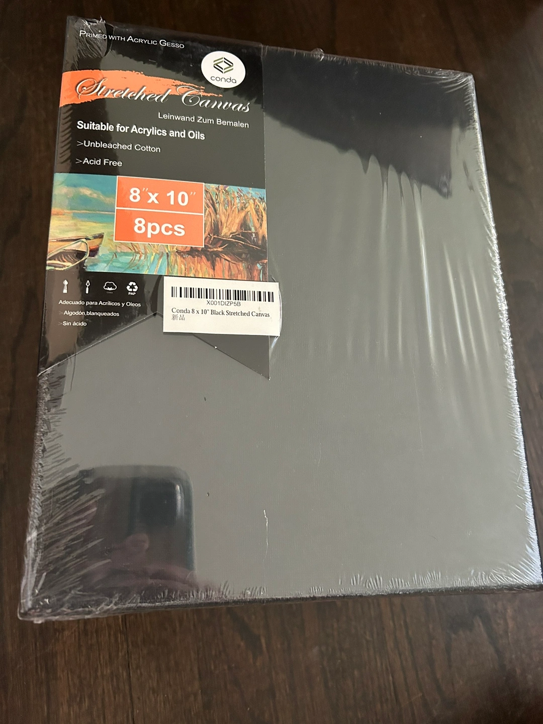 Set of new black cotton canvases, 8 in total. Each is 8in x 10in. These are suitable for acrylics and oils. I found a bunch of sets while unpacking, don't remember why I had so many in storage! Price is for one set of 8.