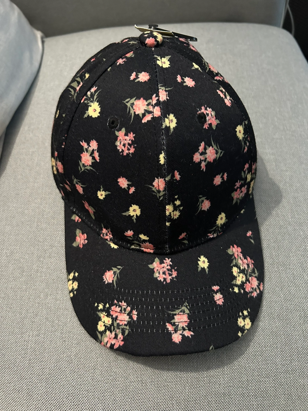 Black baseball cap with a floral pattern. One size fits most. Paid 12.99 plus tax Asking 5.00 Pick up Main Street and 16th