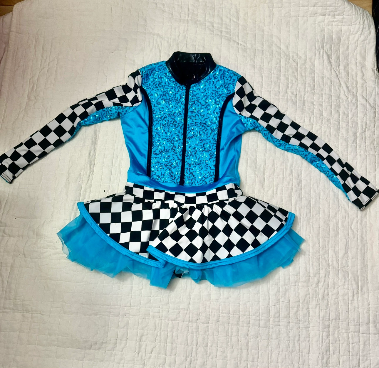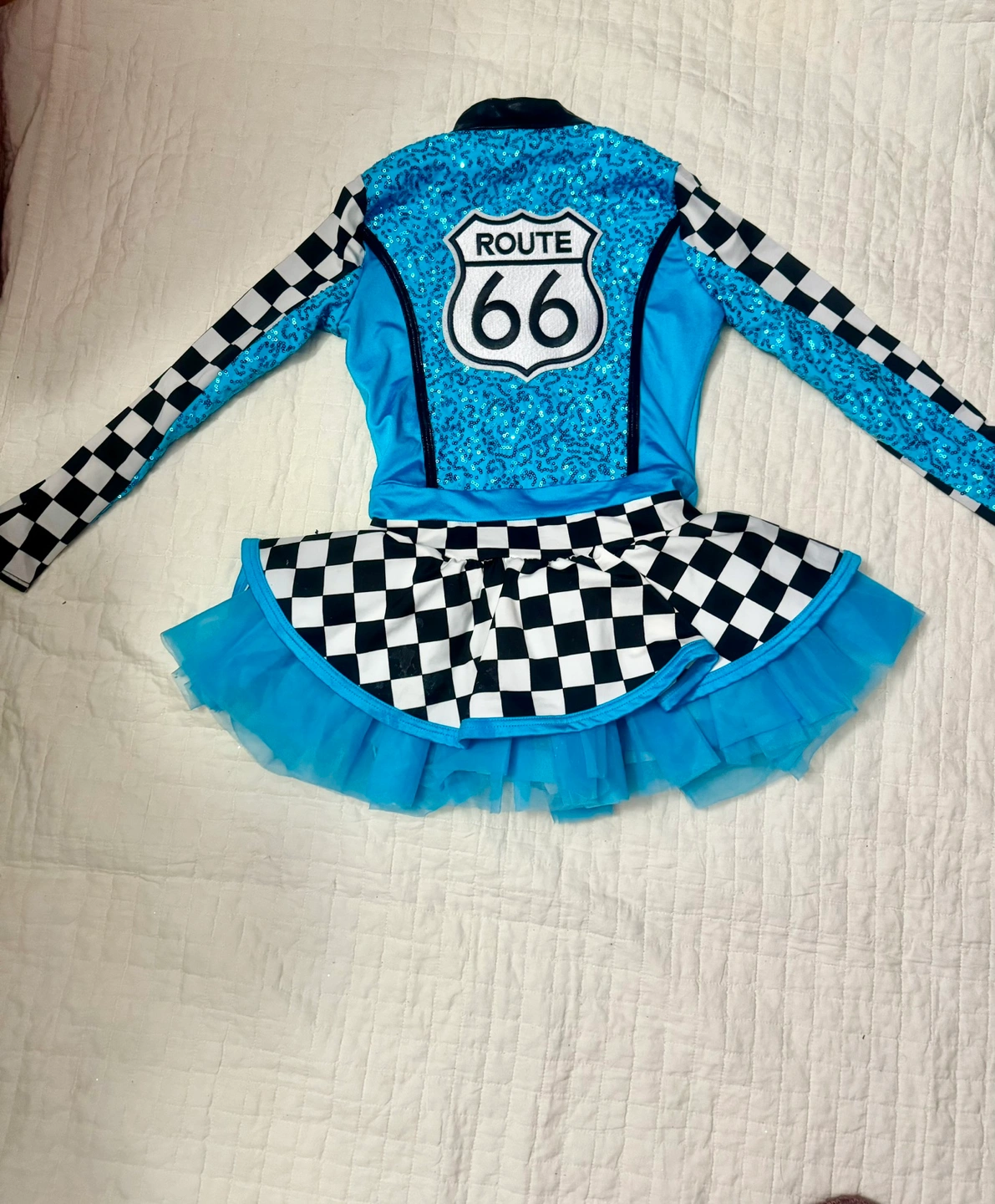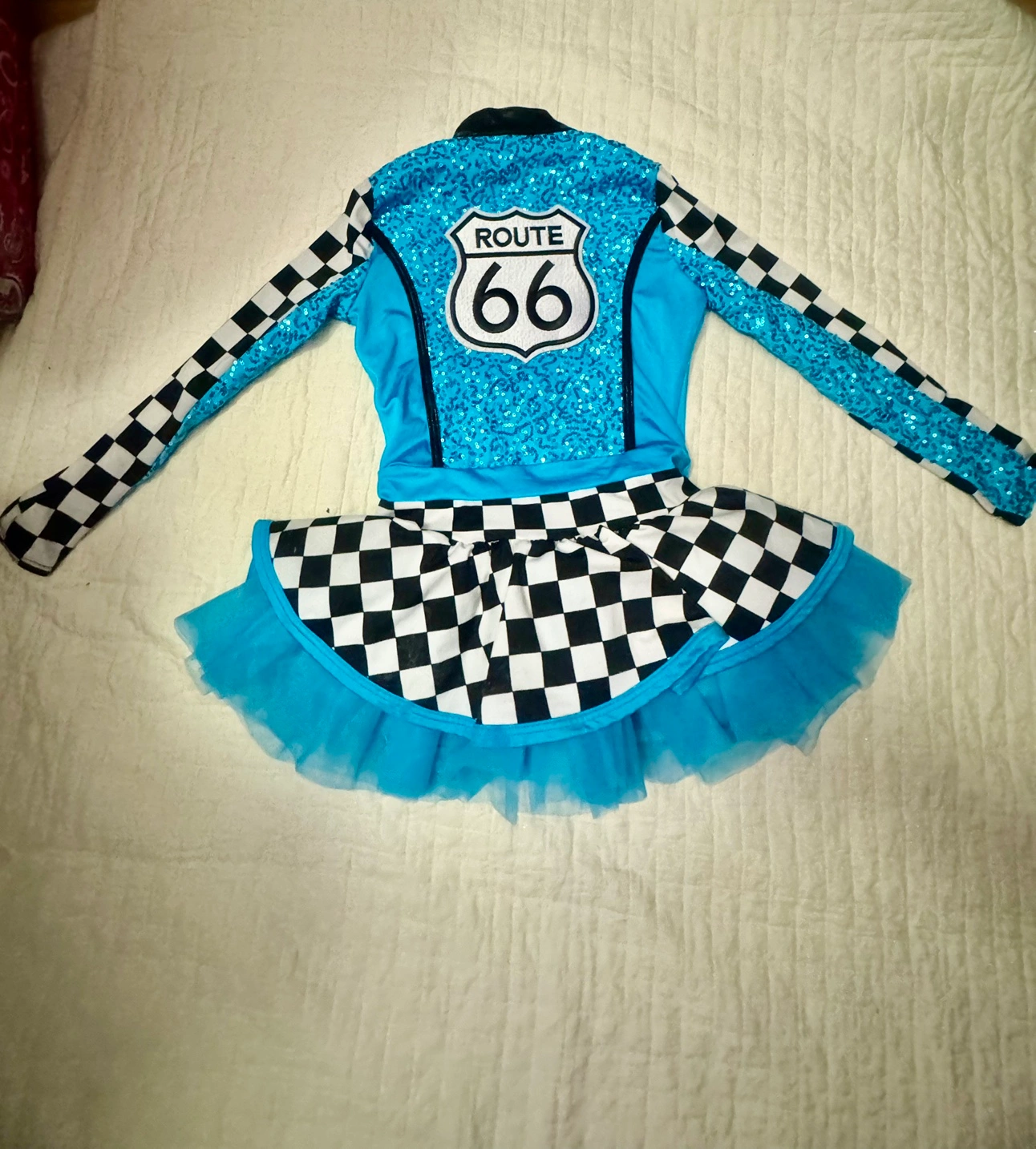 Checkered and Blue Dance/Halloween Costume with Sequins and a Route 66 patch. This is a leotard and skirt combination. Size: 8 to 10 Kids costume Pick up: sandalwood and airport rd. Brampton I have listed other great items reasonably priced. Feel free to view the other things. Happy Shopping π