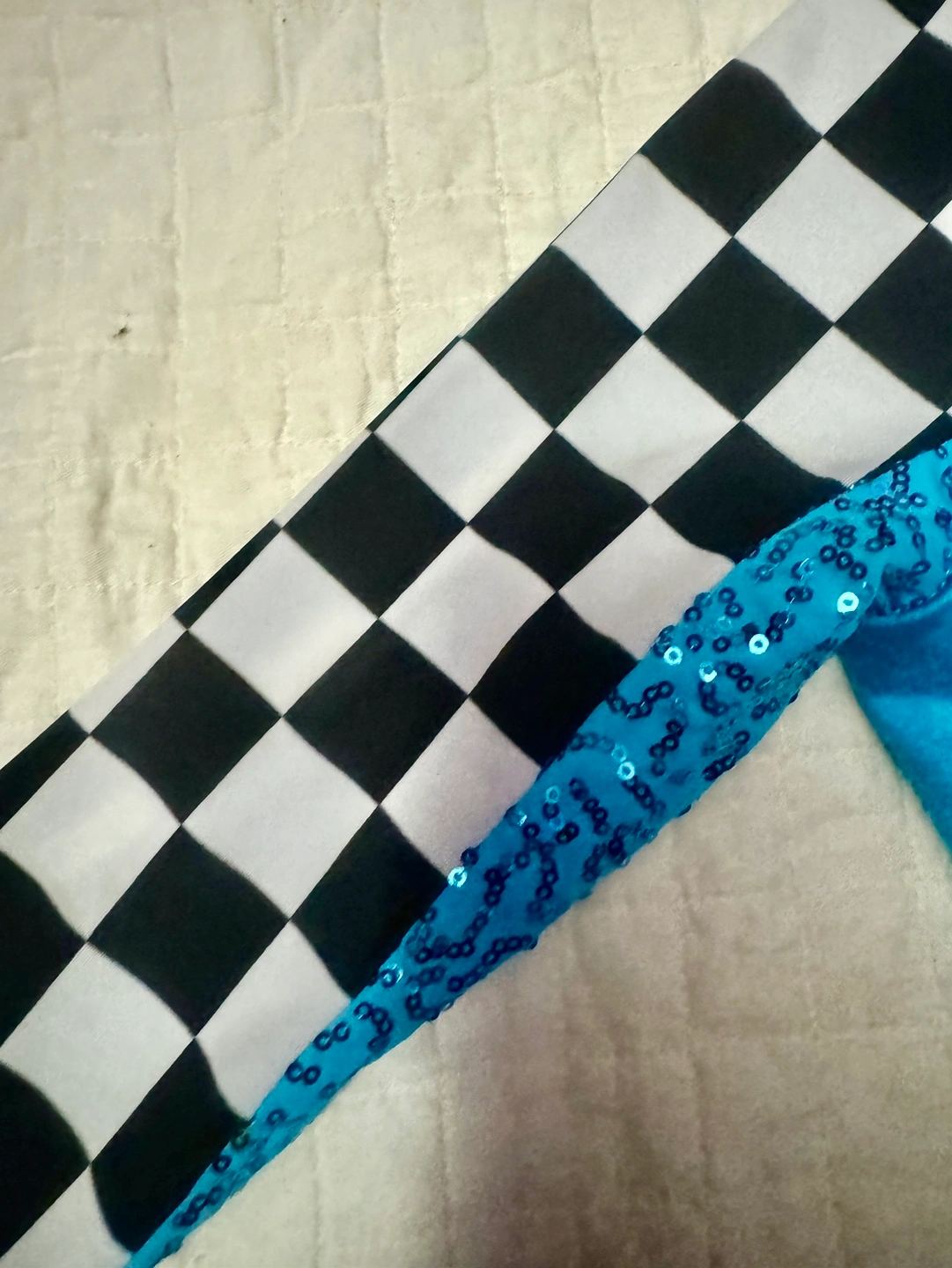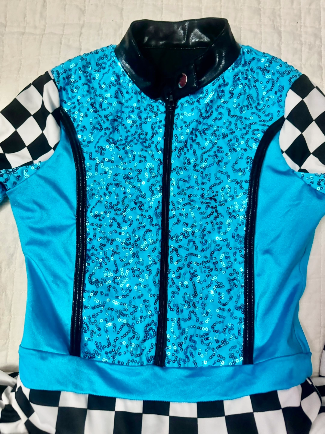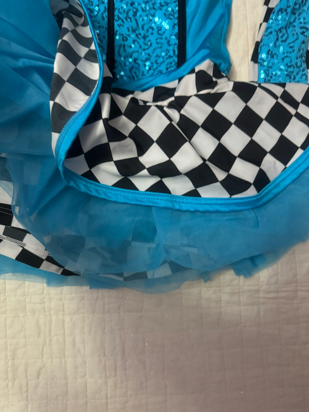 Checkered and Blue Dance/Halloween Costume with Sequins and a Route 66 patch. This is a leotard and skirt combination. Size: 8 to 10 Kids costume Pick up: sandalwood and airport rd. Brampton I have listed other great items reasonably priced. Feel free to view the other things. Happy Shopping π