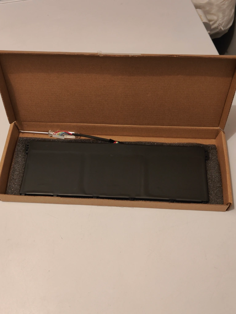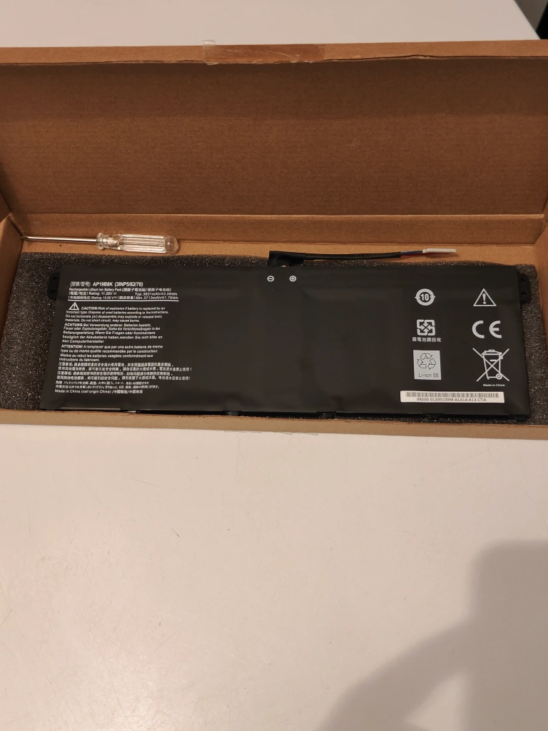 A brand new laptop battery with a screwdriver. Battery cell is made of lithium ion. Has a nominal voltage of 11.25 v Limit charge voltage of 13.05 v Typ: 3831 mAh Please check compatibility in one of the images for what device it can work for.