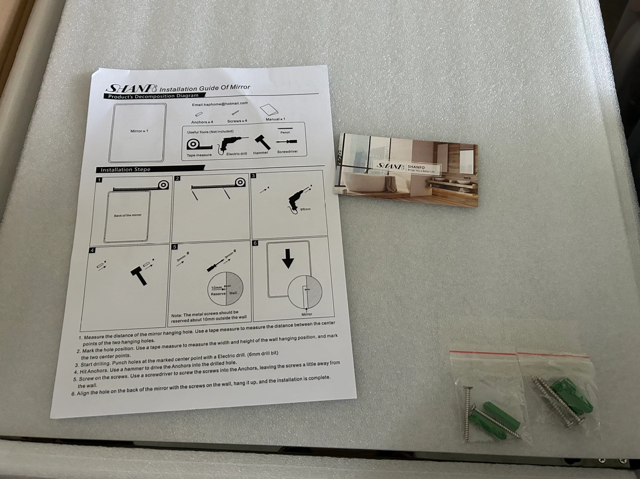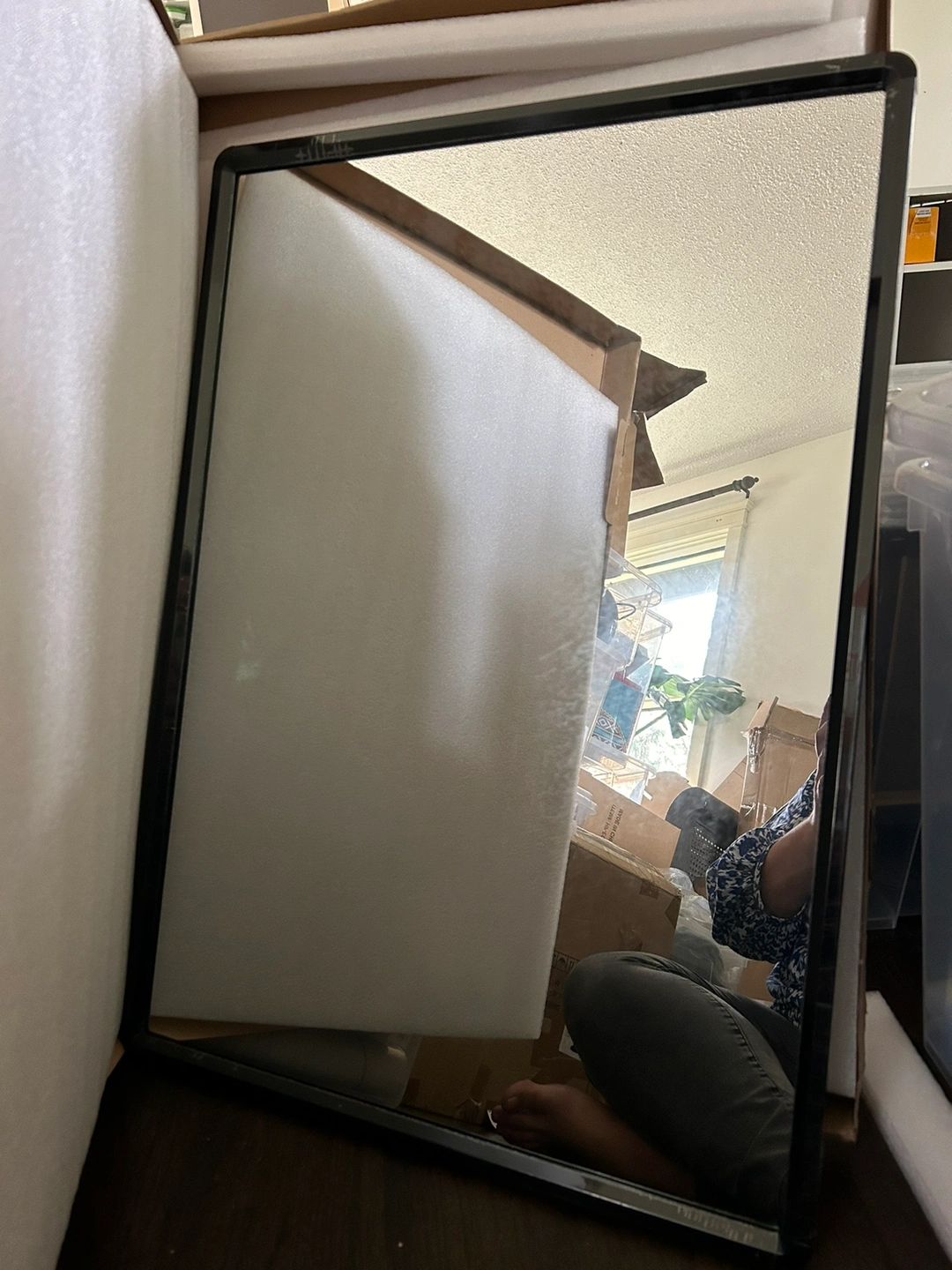 Brand new, opened to take pictures. Was bought to use during house renovations but ended up using a different mirror. Just taking up space now!