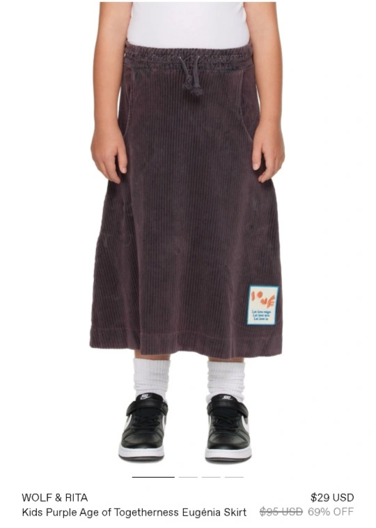 Beautiful girls skirt, made in Portugal. Garment-dyed cotton corduroy skirt in purple. · Drawstring at elasticized waistband · Two-pocket styling · Embroidered felted logo patch at hem · Machine wash Part of the Age of Togetherness collection. Model measures 54" / 137 cm tall and wears size 8. Size: child's height 12: 60-61" / 152-155 cm 100% cotton. Made in Portugal. to be honest, I'm a woman usually size xs-small and I'm 5'6" and I wore this. I think it's really cute. so it's for women, too. pickup downtown near OCAD on McCaul st tags skirt girls kids children women ladies clothing Portuguese cotton cord corduroy purple bundle moving sale