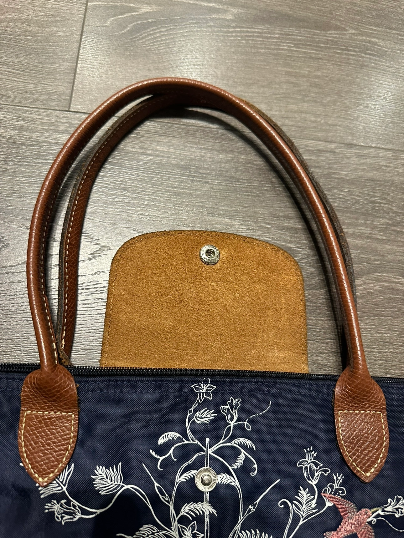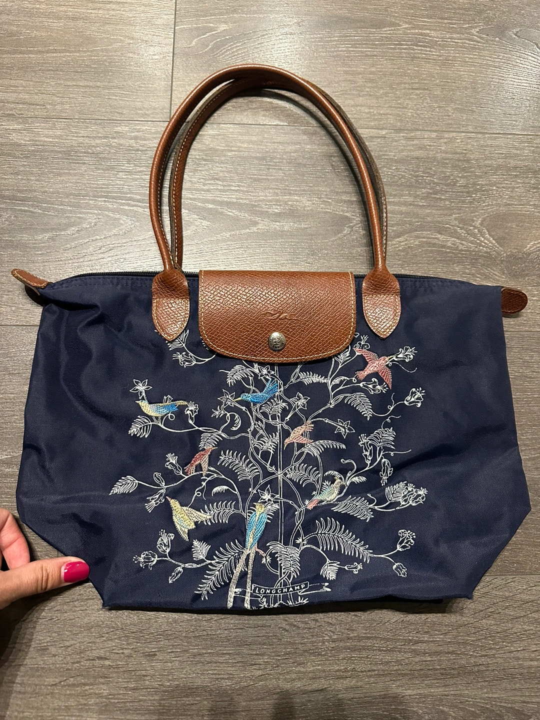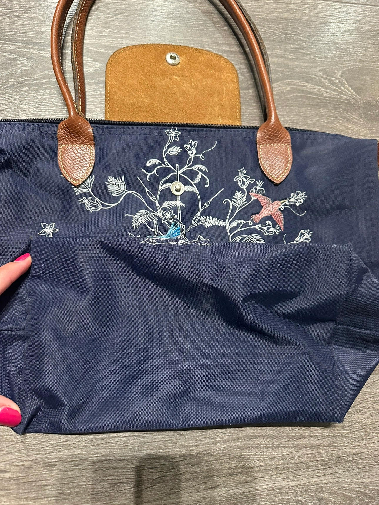 LONGCHAMP Medium Le Pliage Original M Tote Shoulder Bag - shopping models depose - please see dimensions - embroidery Good pre-owned condition as shown in photos Dimensions : 37 cm (L - measured at the base of the bag) x 26,5 cm (H) x 15,5 cm (W) New retails for $200+