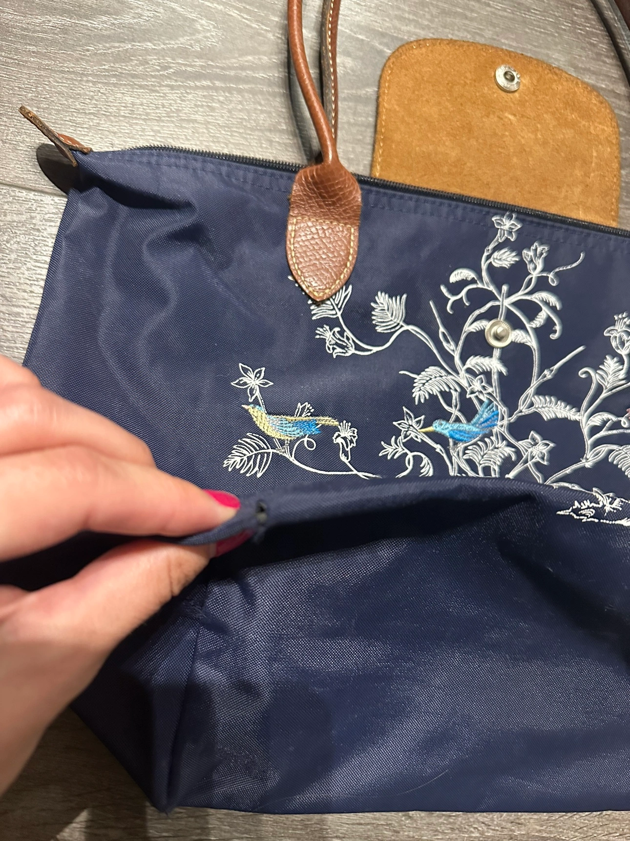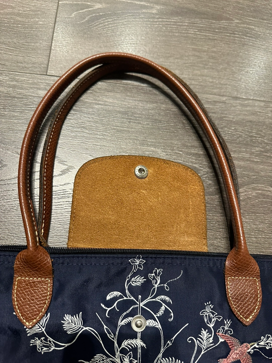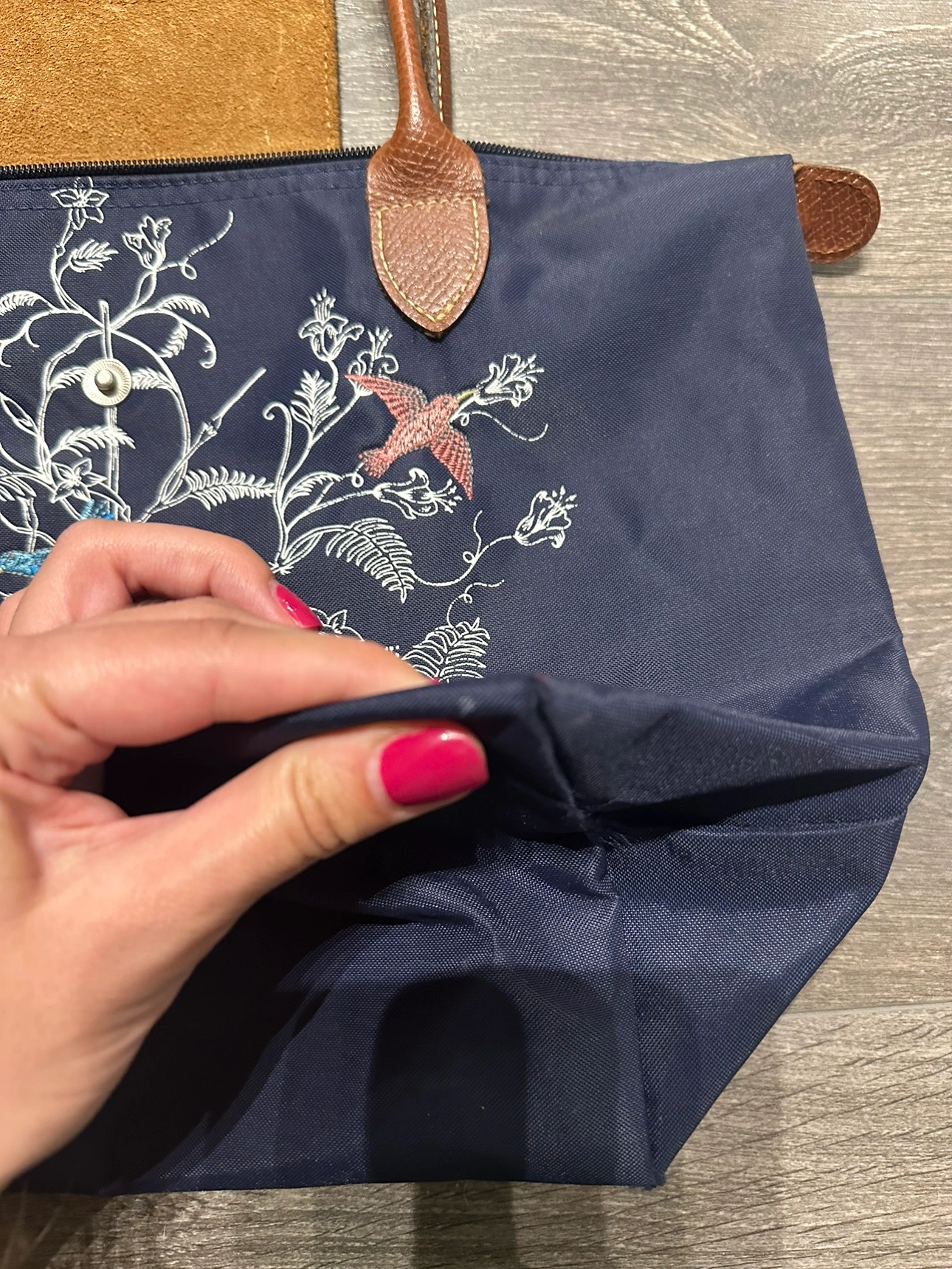 LONGCHAMP Medium Le Pliage Original M Tote Shoulder Bag - shopping models depose - please see dimensions - embroidery Good pre-owned condition as shown in photos Dimensions : 37 cm (L - measured at the base of the bag) x 26,5 cm (H) x 15,5 cm (W) New retails for $200+